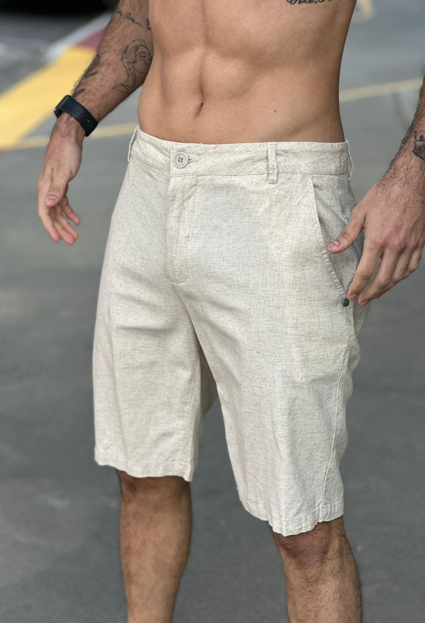 Bermuda alfaiataria basic linen – off white