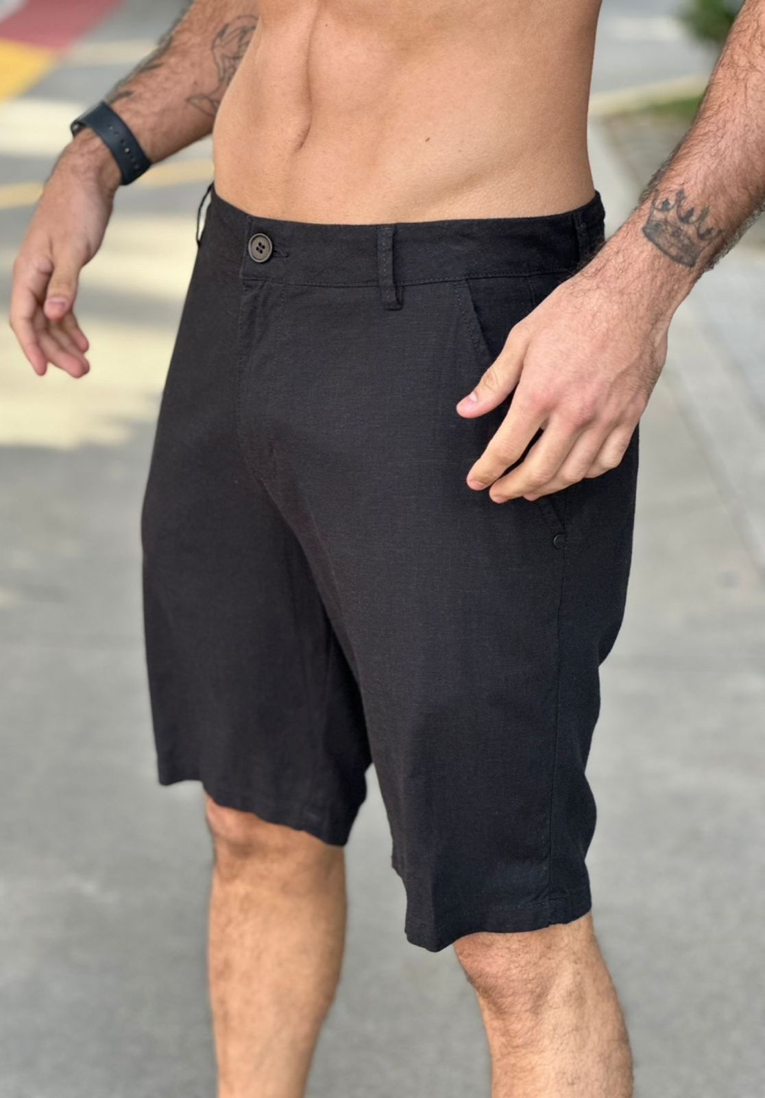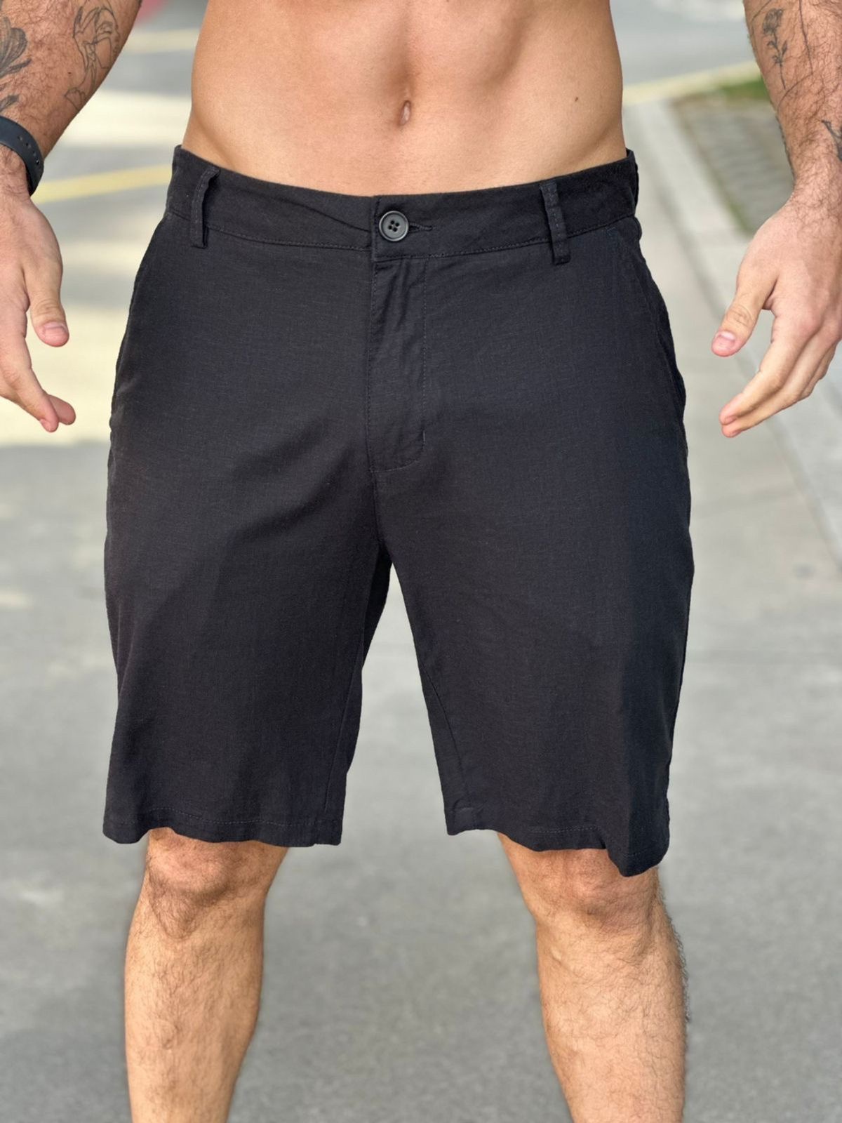 Bermuda alfaiataria basic linen – preto