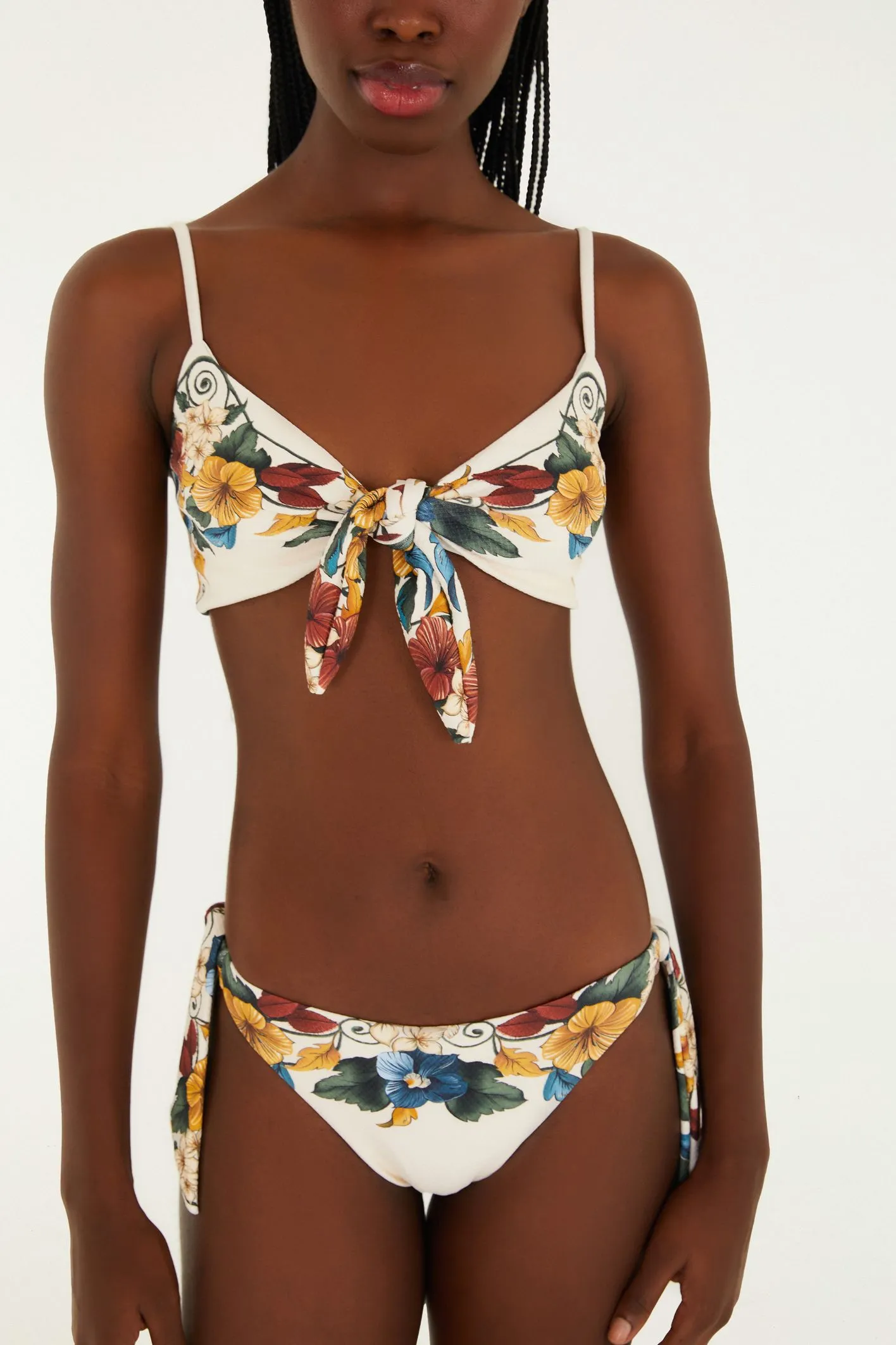 biquíni lenço estampado tropicalzinho. apresenta top com alças finas ajustáveis e amarração central, enquanto a parte inferior possui laterais ajustáveis que proporcionam conforto. a estampa tropical exclusiva é perfeita para dias ensolarados e momentos descontraídos à beira-mar. uma peça singular que combina estilo e versatilidade. FARM RIO original – verão 26.