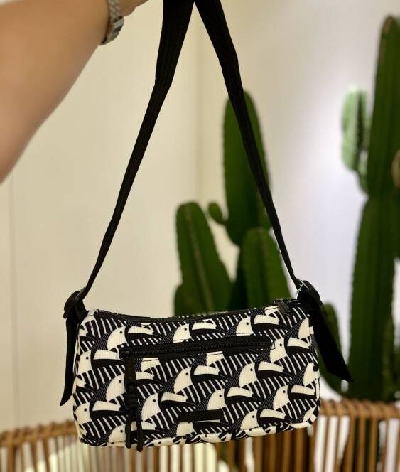 Baguete charmosa, com bolsos externos e alça regulável, para guardar o essencial com praticidade e estilo.