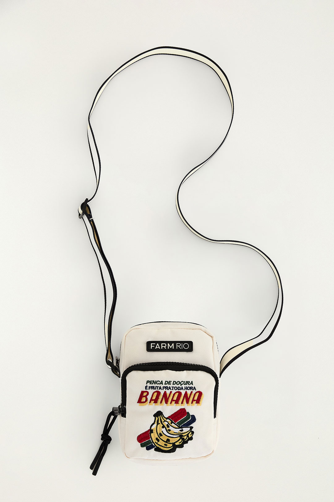 Essa é uma bolsa transversal pequena da FARM Rio, bem “da gema” mesmo — divertida, colorida e com vibe tropical 🌴🍌