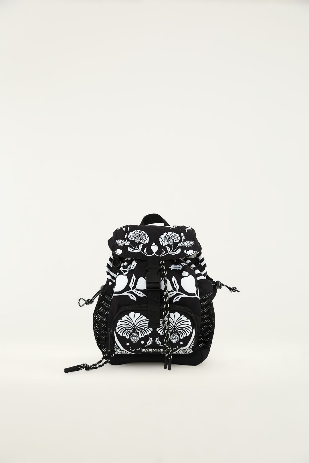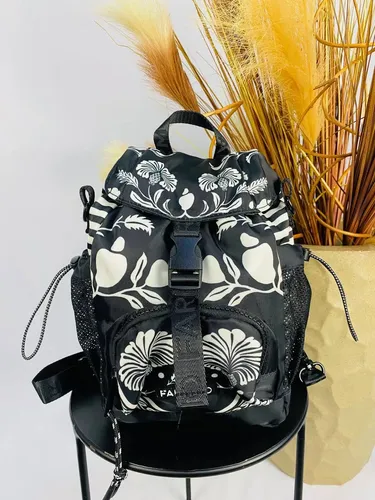 Mochila pequena confeccionada em material resistente, com aba frontal sobreposta, tiras médias de gorgorão aplicadas com nome da marca em baixo-relevo na parte frontal, bolso frontal, bolso lateral em tela com puxador ajustável, alça longa em gorgorão com nome da marca em baixo-relevo e regulável, base reta, forro têxtil e fechamento superior por zíper e fivela de encaixe frontal.