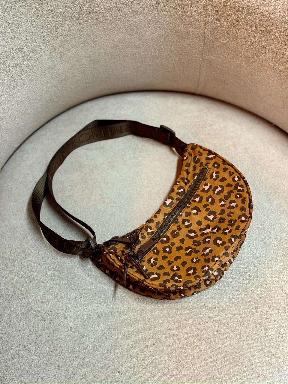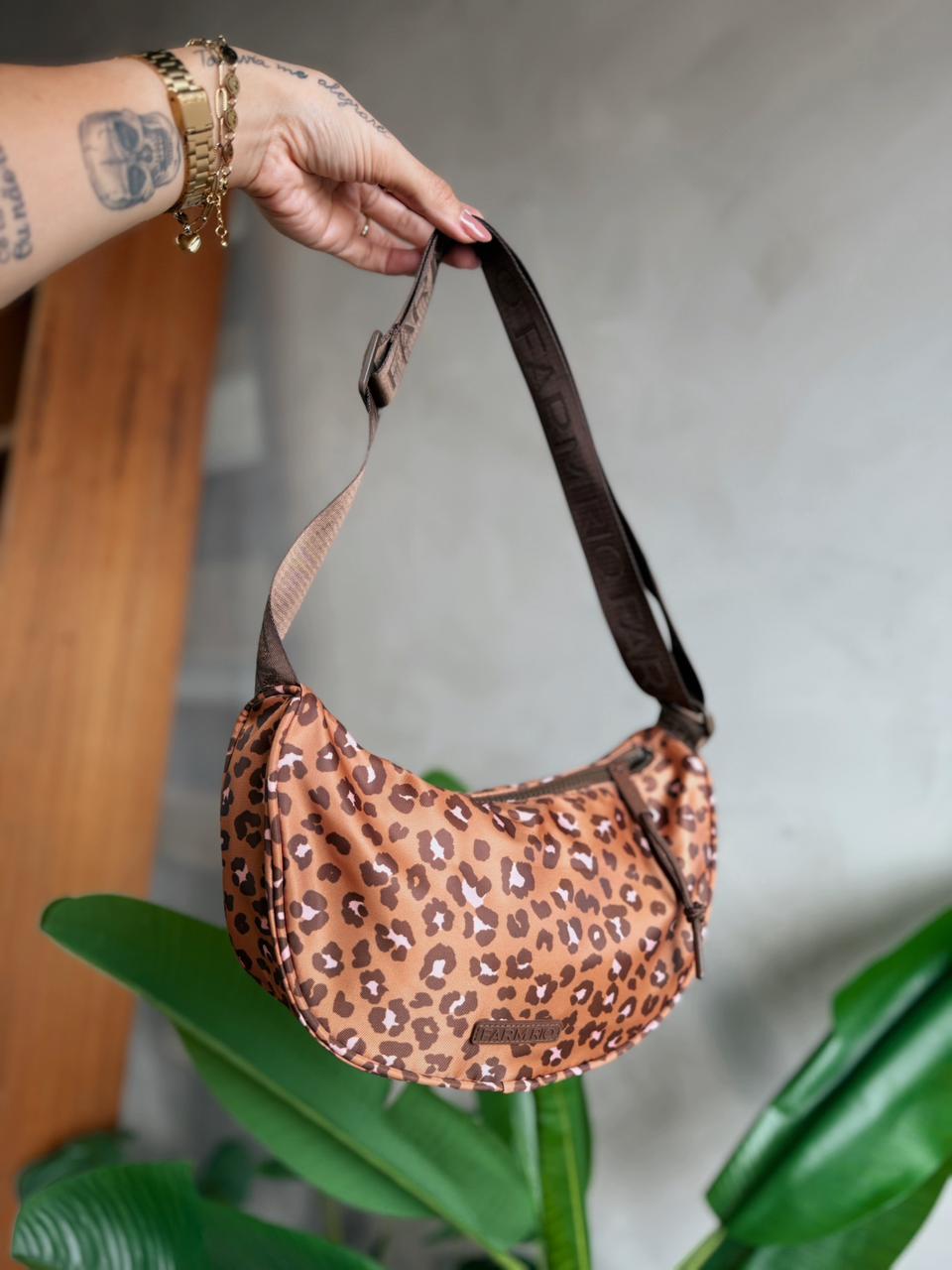 A bolsa “Rio Onça” é uma peça de design inspirada na onça-pintada (jaguar), um felino típico das regiões tropicais da América Latina. O nome “Rio Onça” sugere uma referência ao padrão de estampa da bolsa, que imita as manchas da onça, geralmente em um tom bege ou marrom, como visto na imagem.