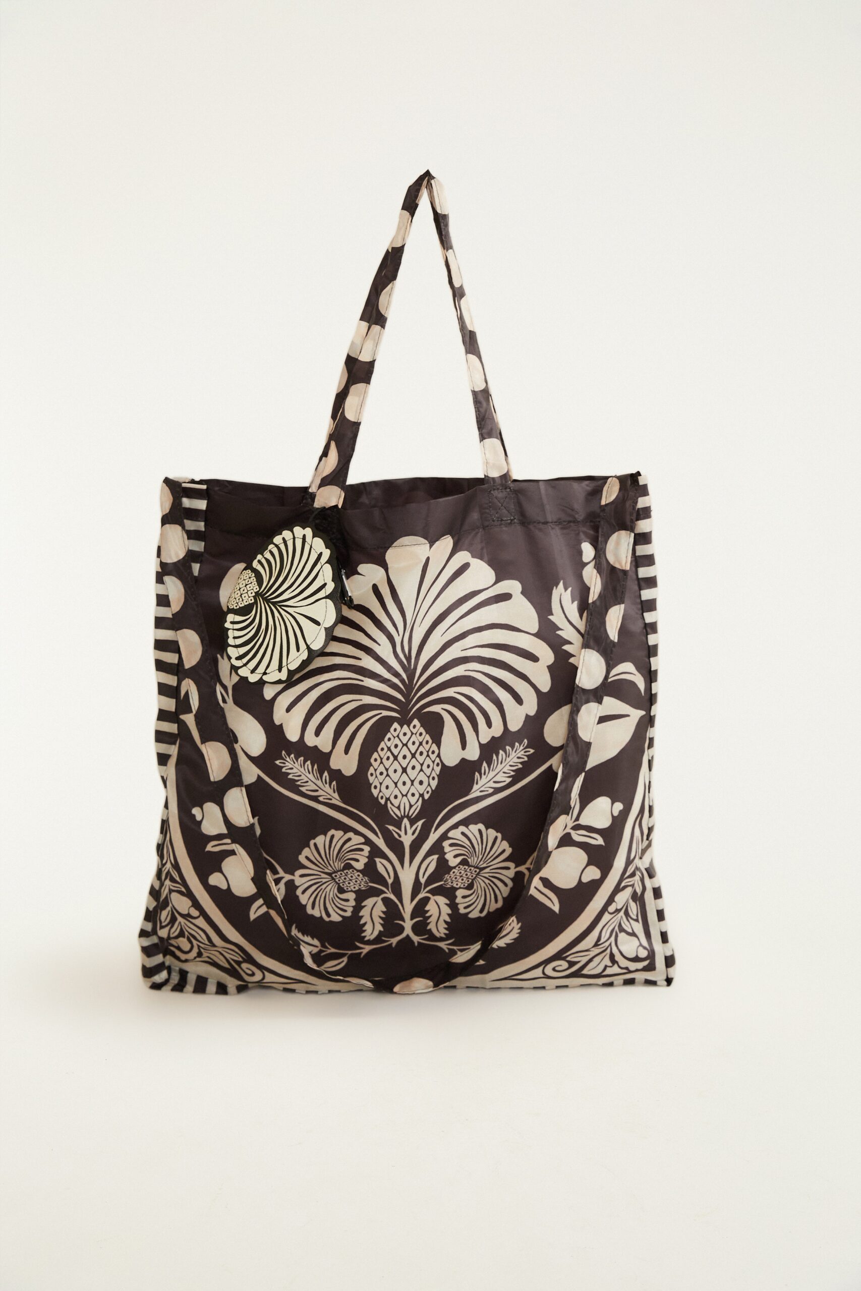 Bolsinha me leva, uma peça prática, versátil e que te salva do mercado à praia. A peça é compacta, feita em nylon estampado, acompanha mini bolsa de elemento. Ótima para viagens e dias práticos.