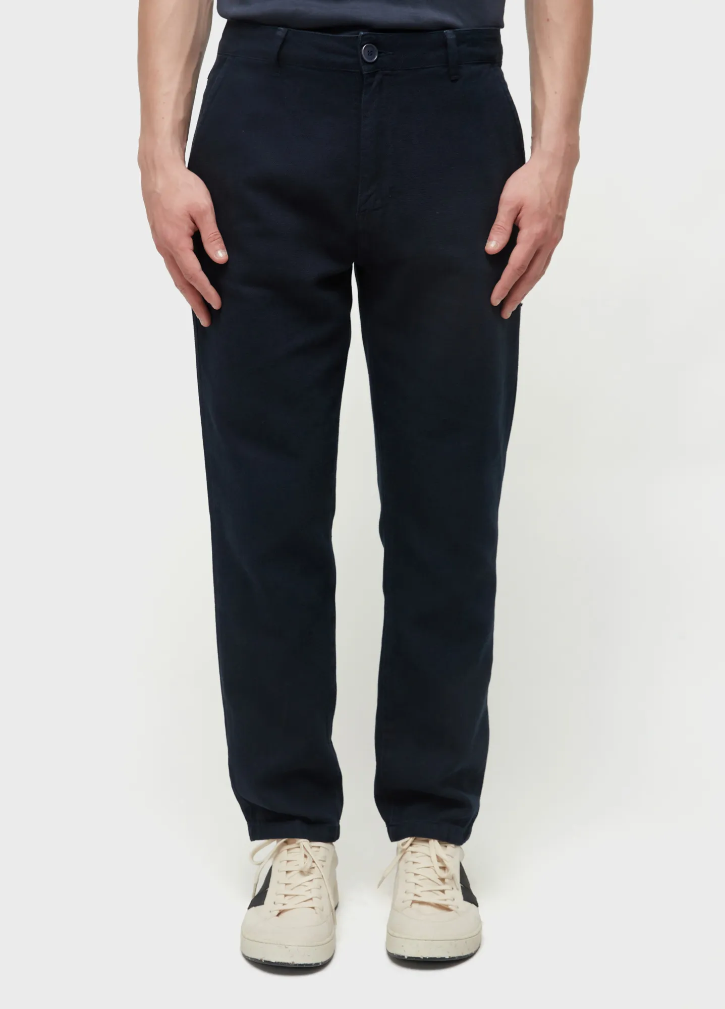 Calça alfaiataria com modelagem slim, feita em algodão texturizado.