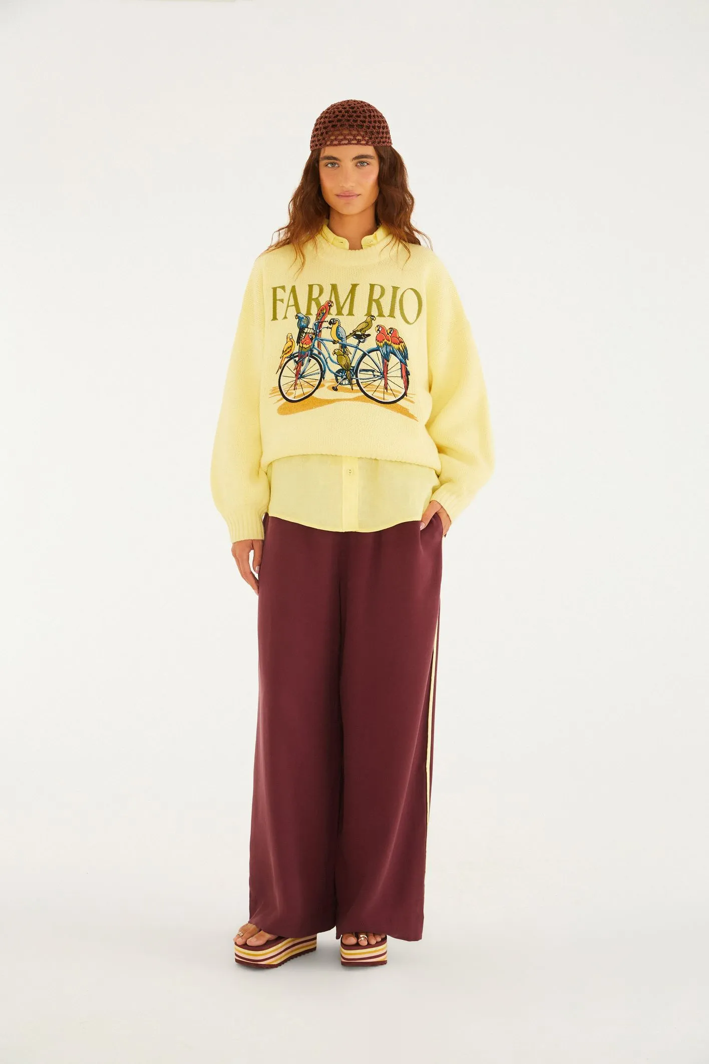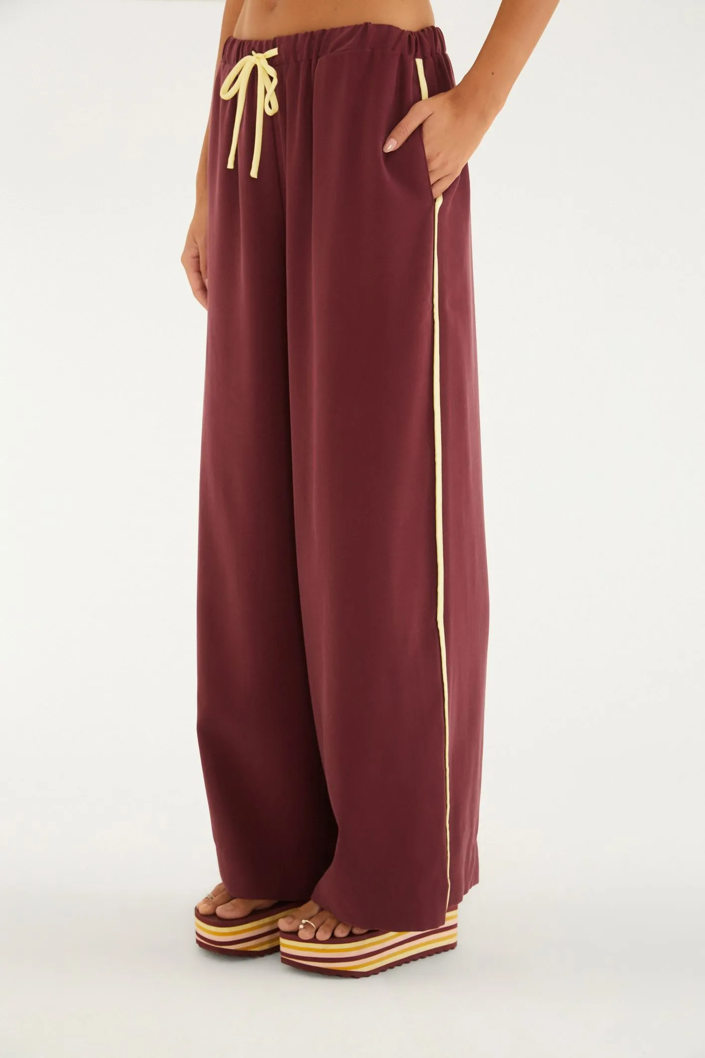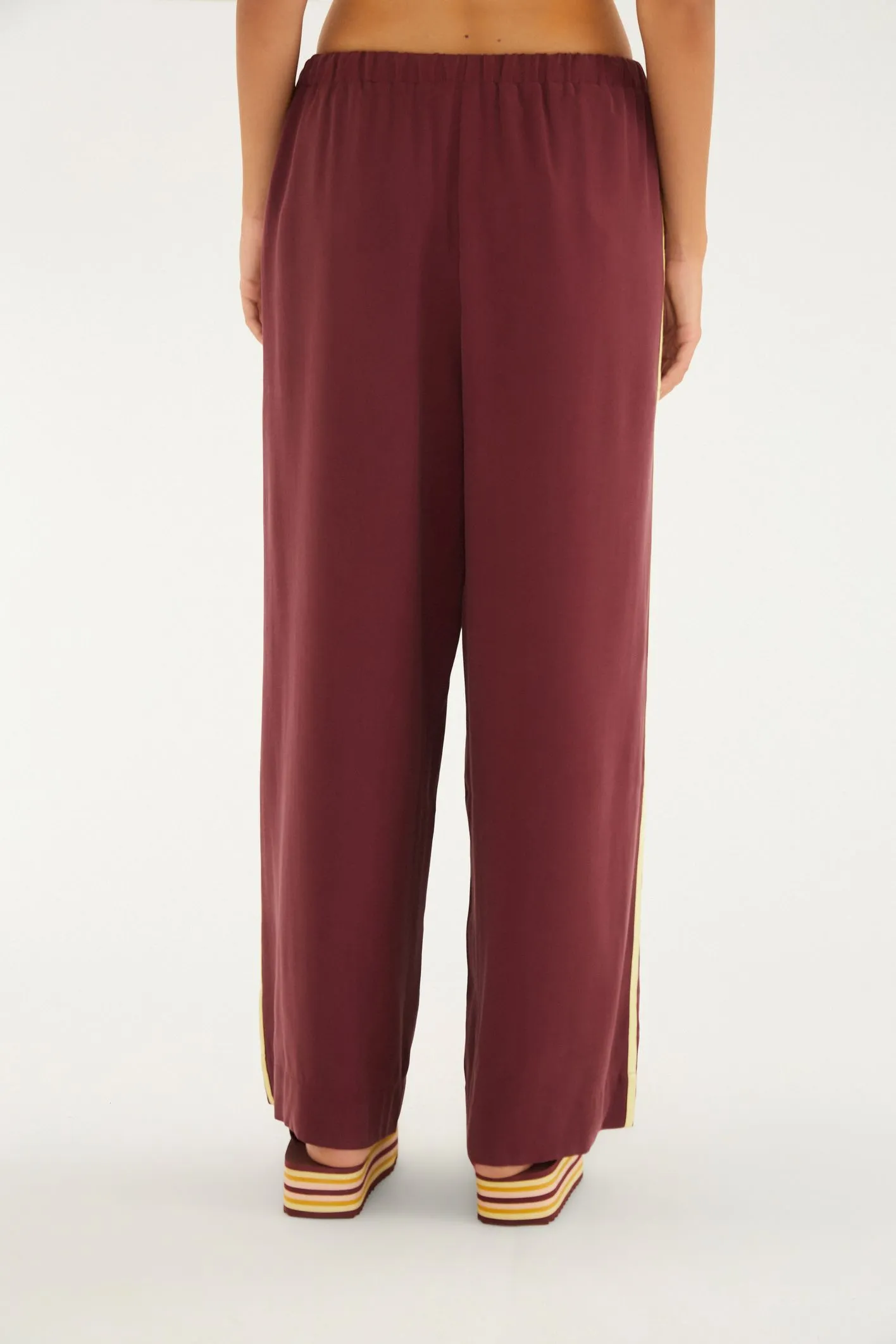 calça elástico detalhe vivo. possui cintura ajustável por elástico e cadarço, caimento largo e confortável. os detalhes vivos nas laterais trazem um toque único à peça, elevando seu estilo casual. perfeita para um passeio no parque ou um encontro descontraído. FARM Rio, coleção Carioca – inverno 26.