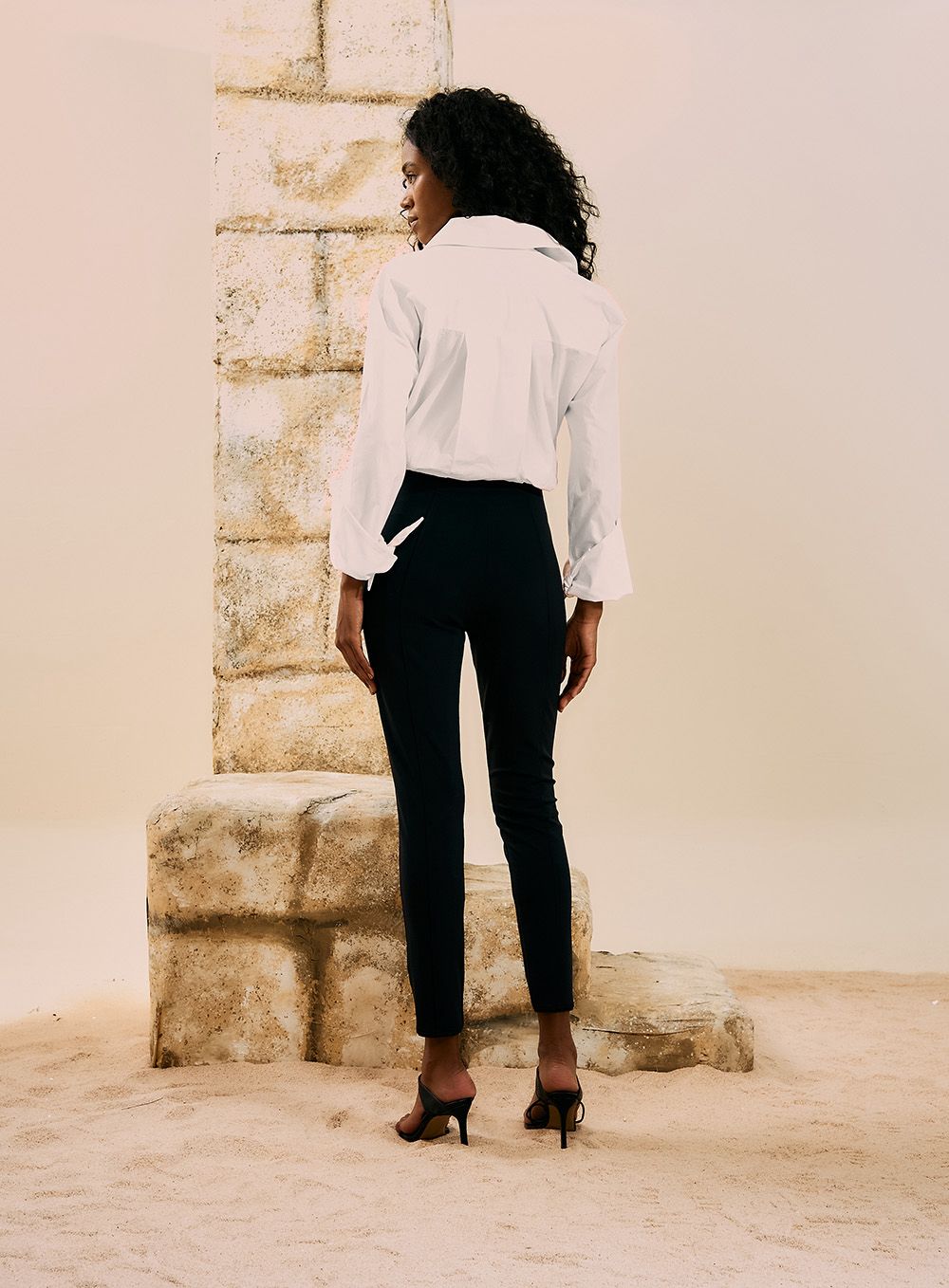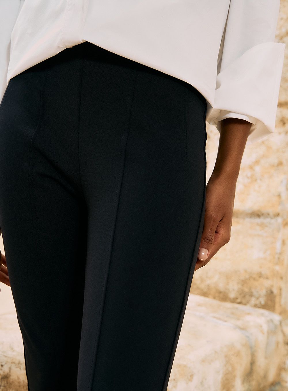Design: Modelagem justa com cintura média, linhas minimalistas e acabamento sofisticado.