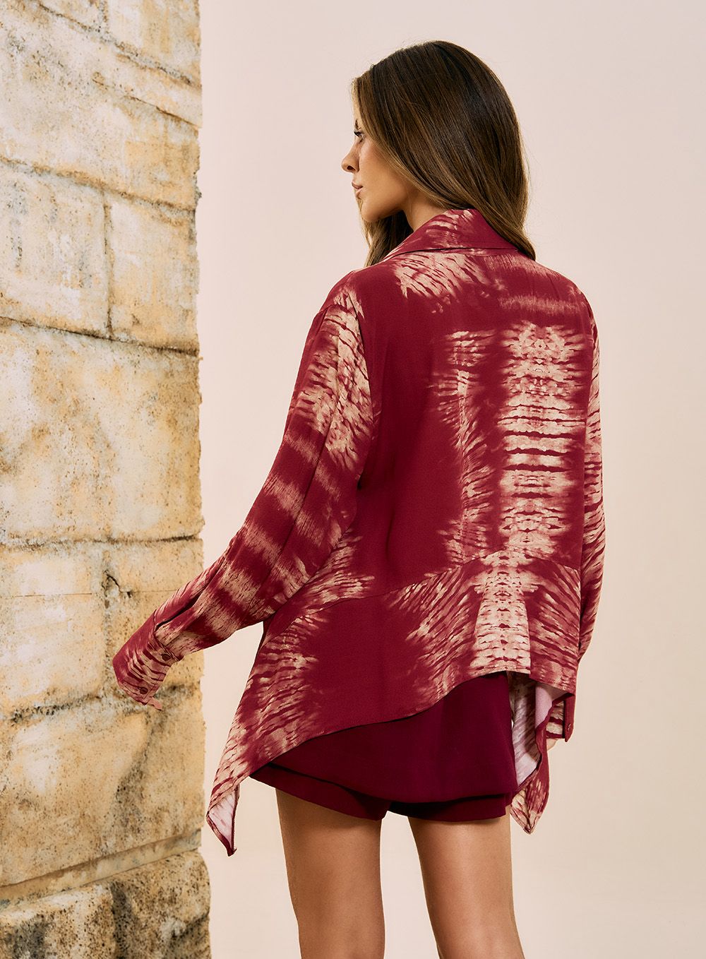 Detalhes: Estampa orgânica que adiciona movimento e estilo; fechamento frontal com botões para praticidade e versatilidade.