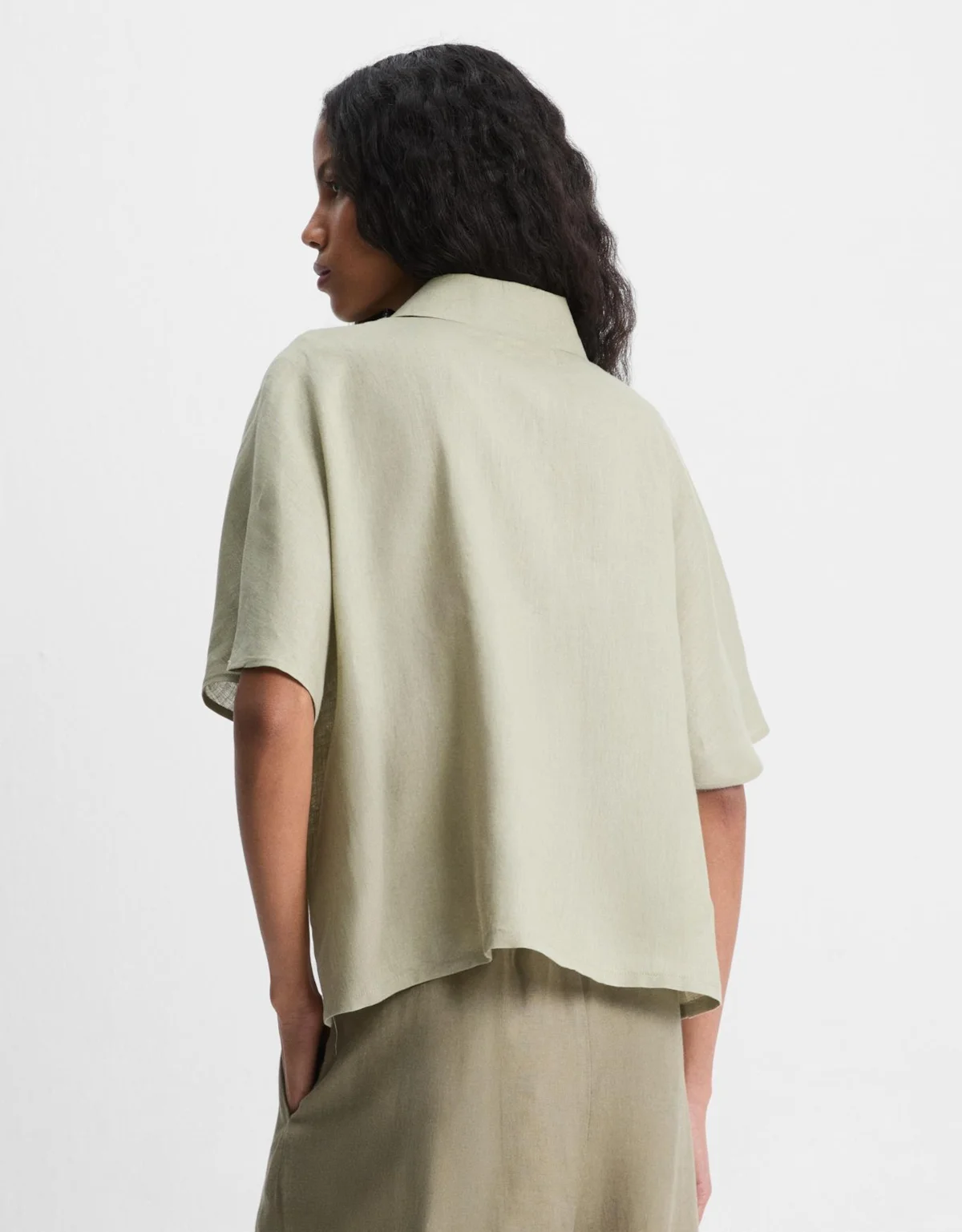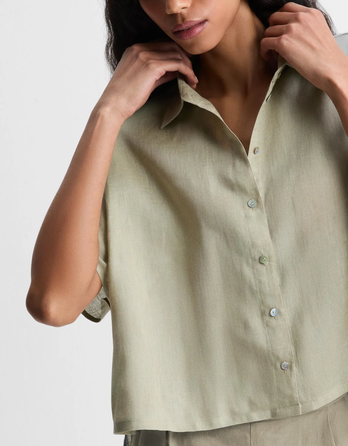 - Tecido de 100% linho natural, com toque fresco, leveza e visual elegante