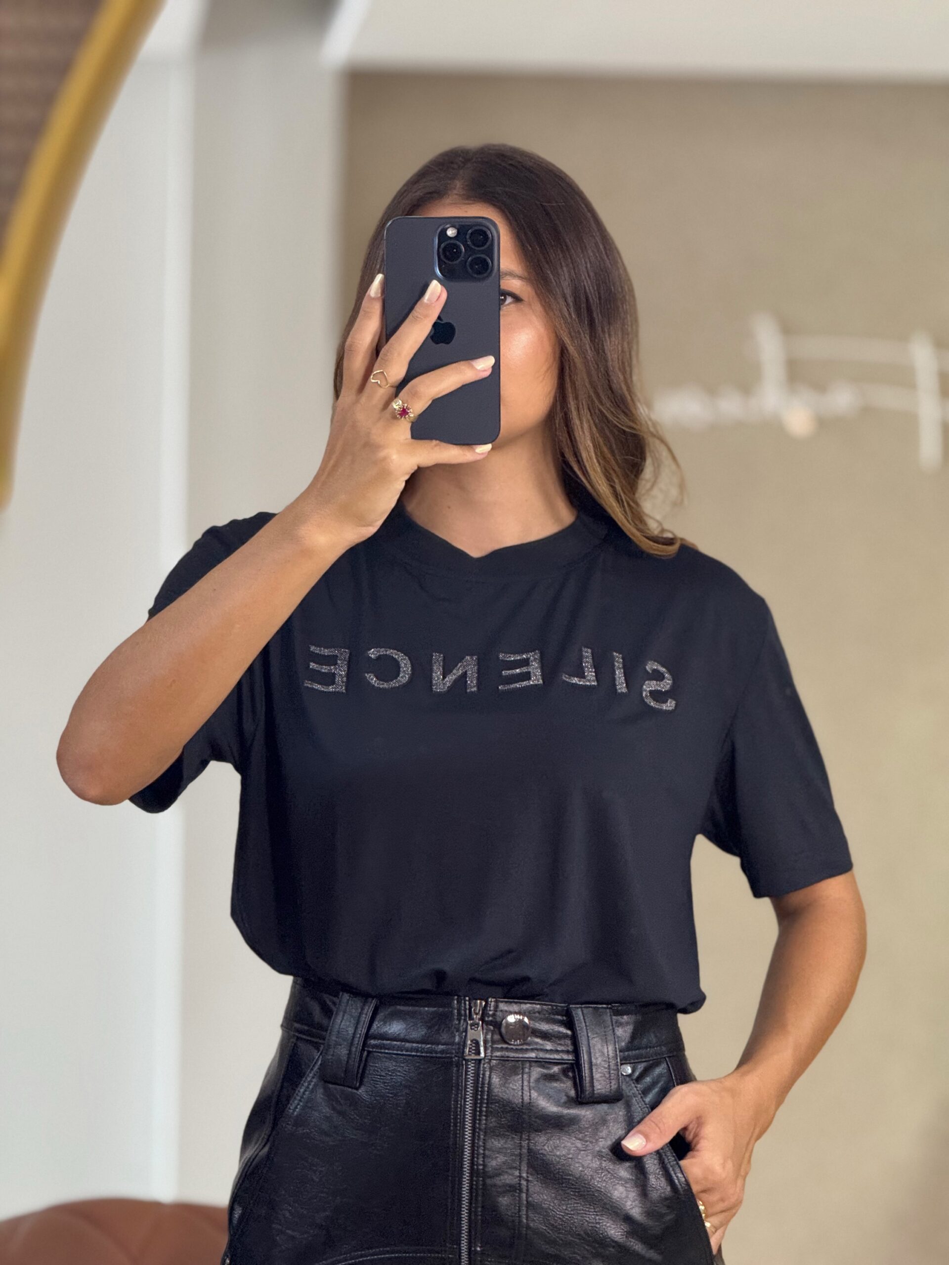 • Quer um visual urbano? Aposte em calça wide leg preta e acessórios metálicos.