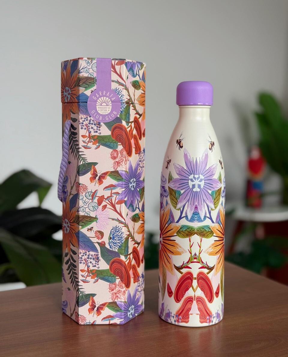 Desenvolvida para o público que valoriza o autocuidado com consciência ambiental, a garrafa de 750 ML ajuda a reduzir o uso de descartáveis no dia a dia. Com um visual que une a delicadeza do fundo claro à vivacidade das flores, ela transforma o simples hábito de beber água em uma verdadeira declaração de estilo e conexão com a natureza.