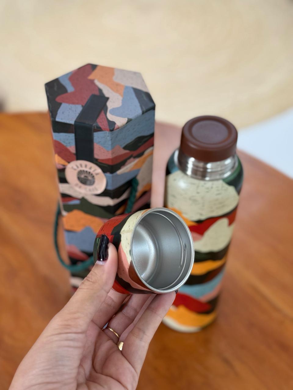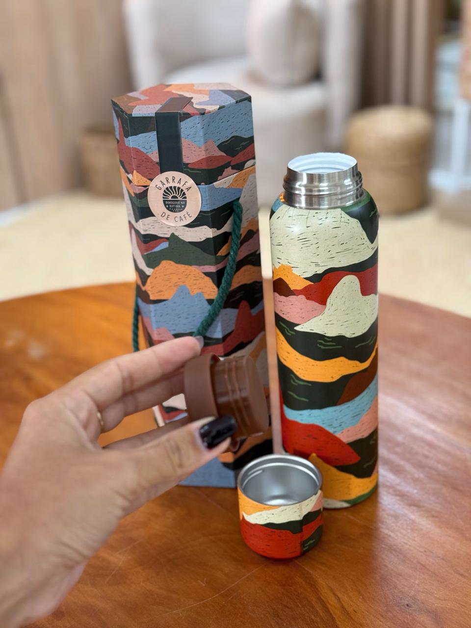 Garrafinha térmica de 750ml de alta resistência e durabilidade.