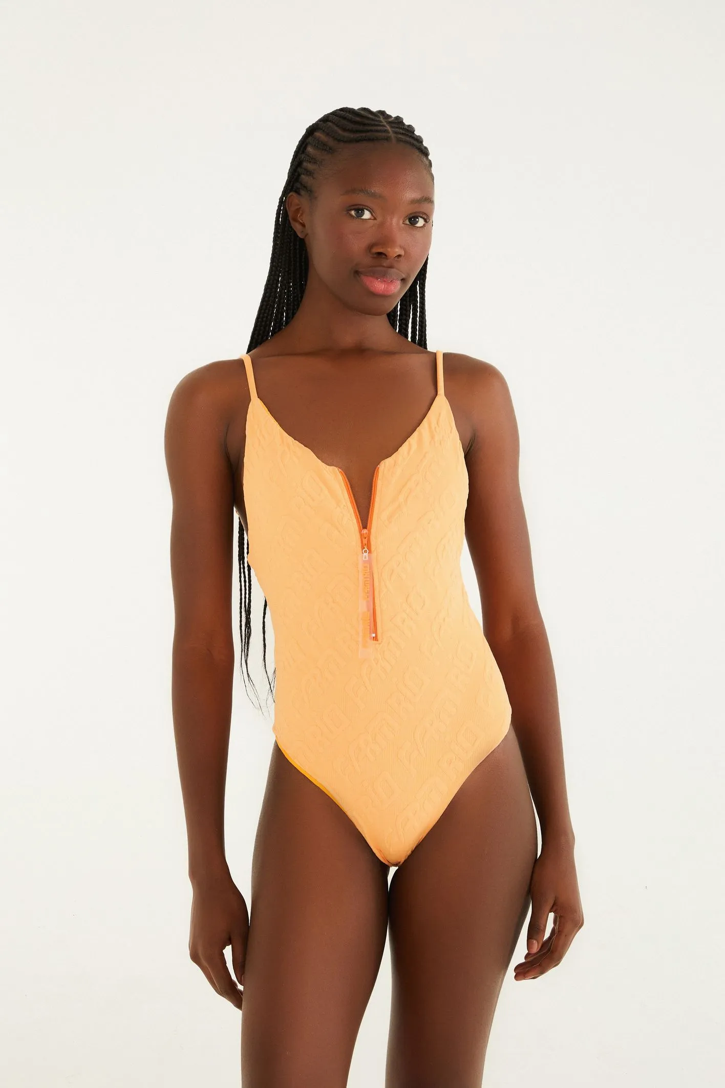 maiô jacquard farm rio. com decote em v profundo e botões decorativos, oferece alças finas ajustáveis para um caimento personalizado. confeccionado em jacquard, garante um toque de textura única. perfeito para um dia casual na praia ou na piscina, com estilo autêntico e descontraído. FARM RIO original – alto verão 26.