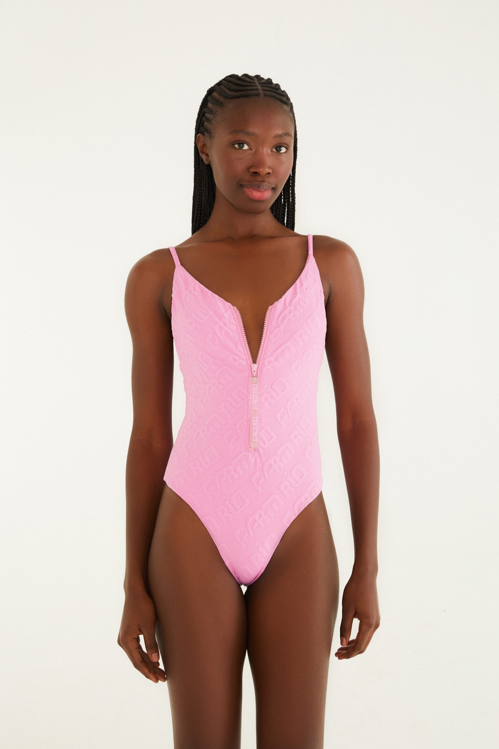 maiô jacquard farm rio. com decote em v profundo e botões decorativos, oferece alças finas ajustáveis para um caimento personalizado. confeccionado em jacquard, garante um toque de textura única. perfeito para um dia casual na praia ou na piscina, com estilo autêntico e descontraído. FARM RIO original – alto verão 26.