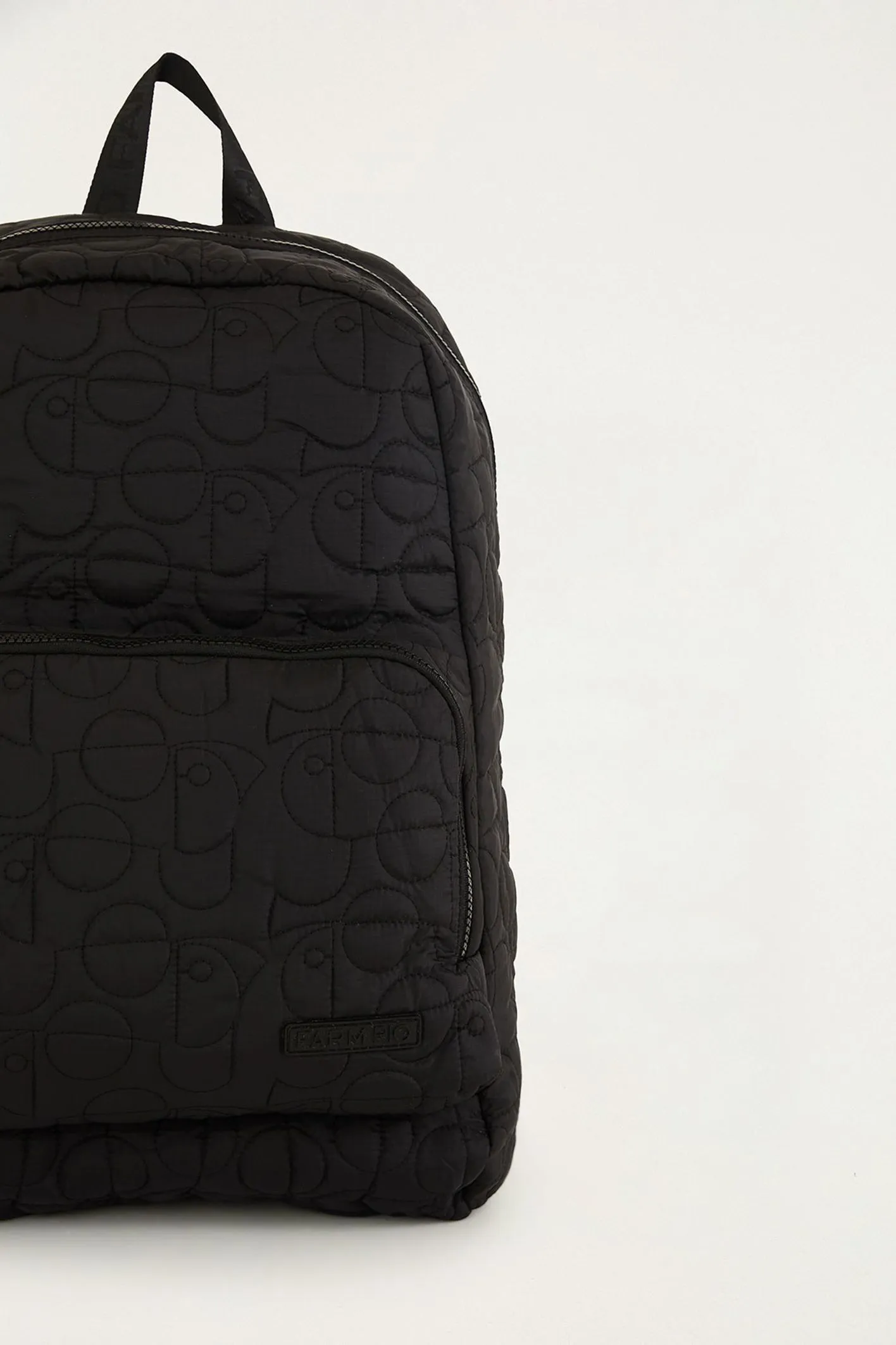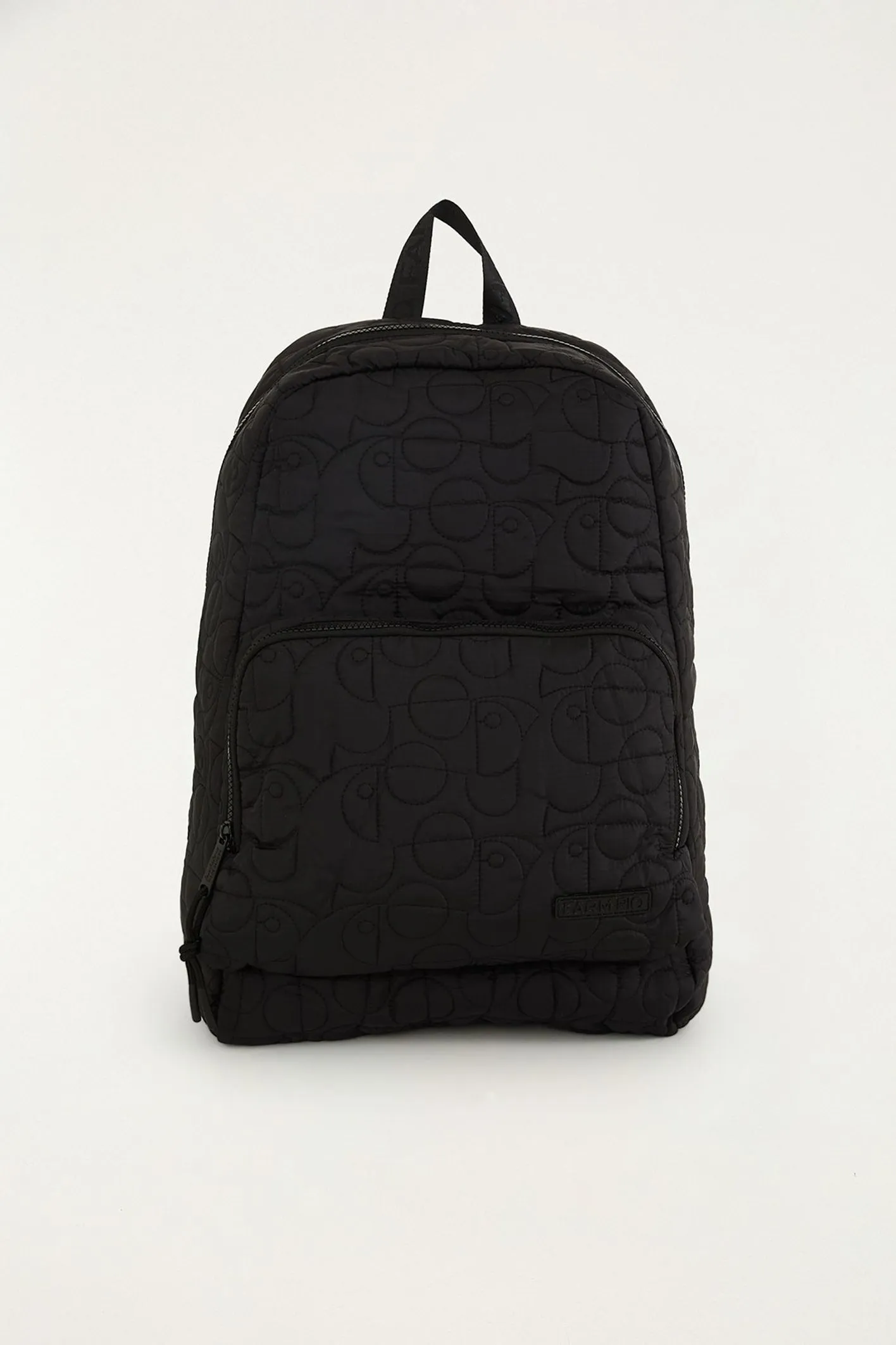 mochila xodó puffer preto. possui formato retangular, compartimento interno amplo com divisória e forro, bolso frontal com fechamento em zíper, parte posterior em mesh acolchoado, alça fixa de mão em gorgurão com o nome da marca em baixo relevo, alças longas e reguláveis e fechamento superior por zíper. o que não se veste, se vive. chegou FARM Etc, a marca de lifestyle da FARM Rio.