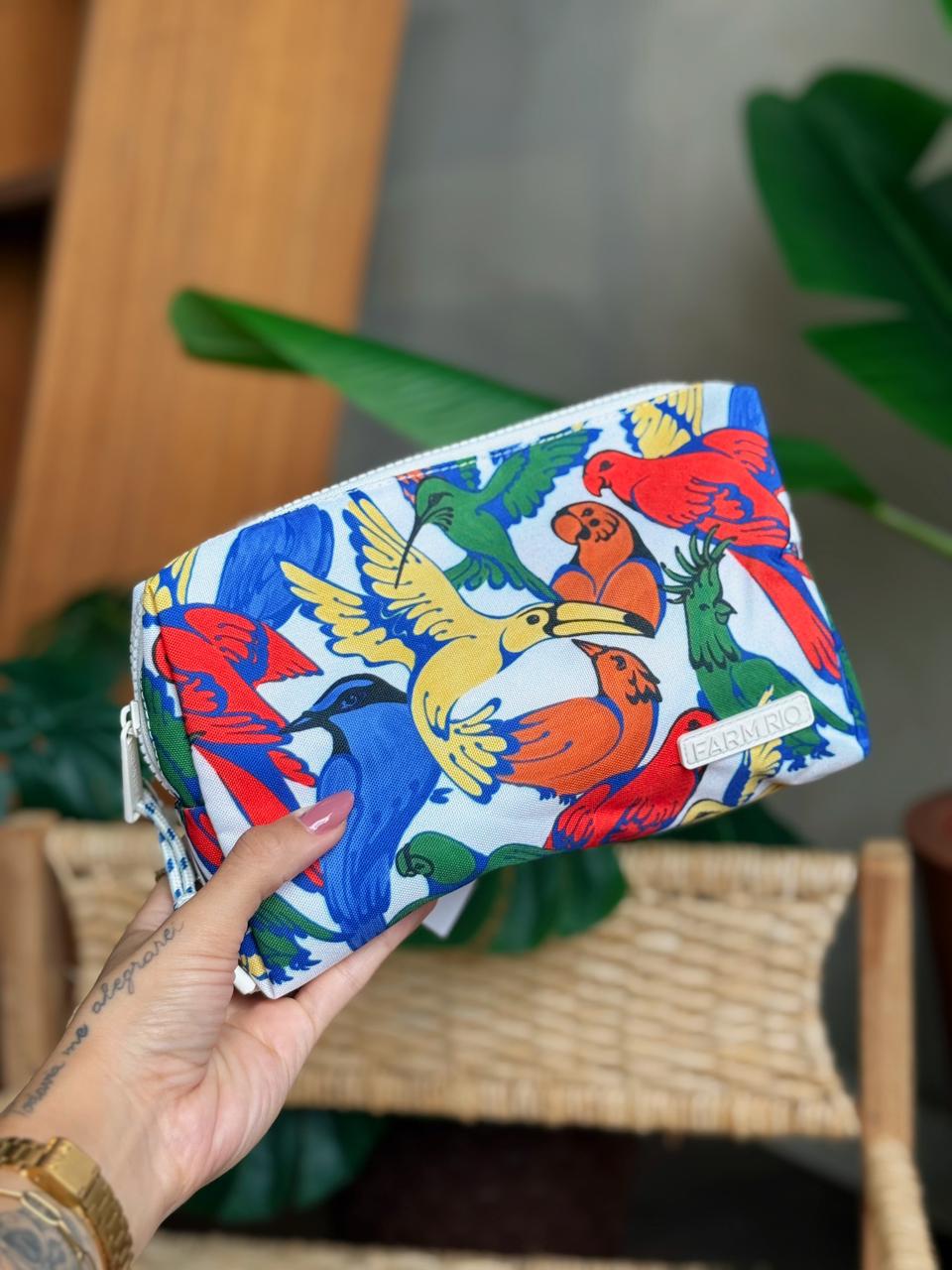 Colorida, divertida e com identidade brasileira forte. Ideal para organizar maquiagem, itens pessoais ou usar dentro da bolsa e em viagens. Dá um up instantâneo em qualquer look ou mala