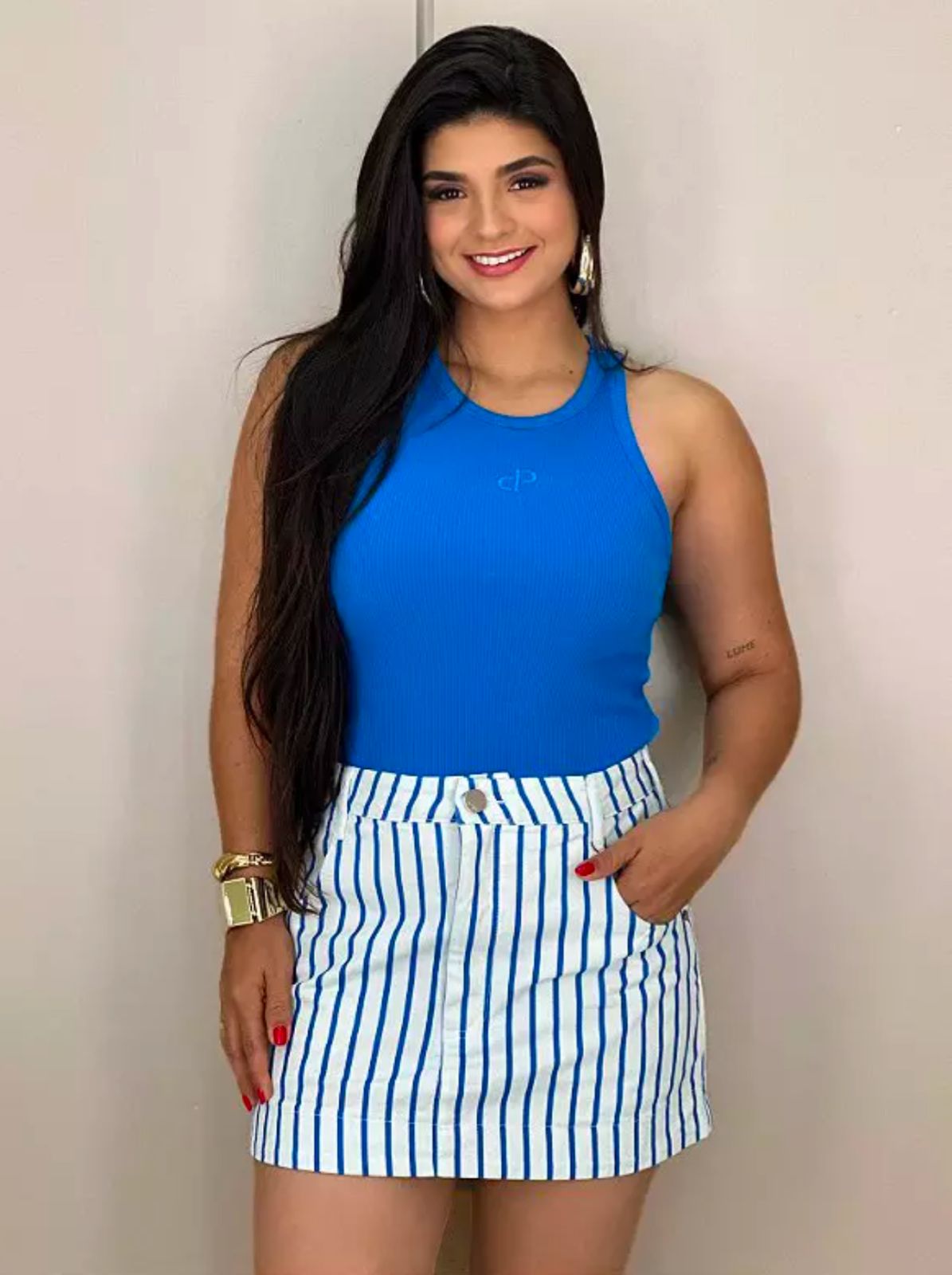 • Detalhes: Decote e cavas com acabamento em debrum, recorte no centro costas, barra com acabamento tradicional.