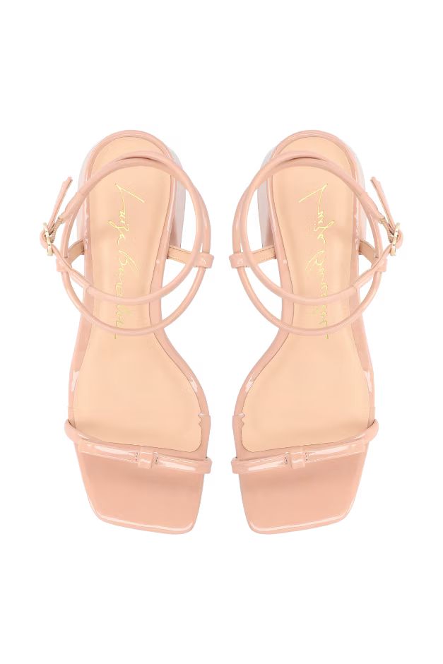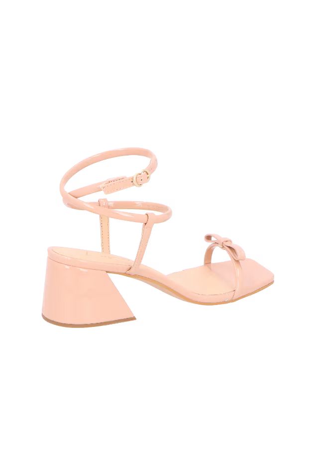 Esta sandália Luiza Barcelos traz uma nova interpretação aos elementos românticos, com detalhes cheios de estilo e super elegantes. O modelo é produzido em material tecnológico com acabamento em verniz no tom bege rouge, possui tiras delicadas com detalhe de laço frontal, salto médio geométrico e fechamento por fivela de ajuste no tornozelo.