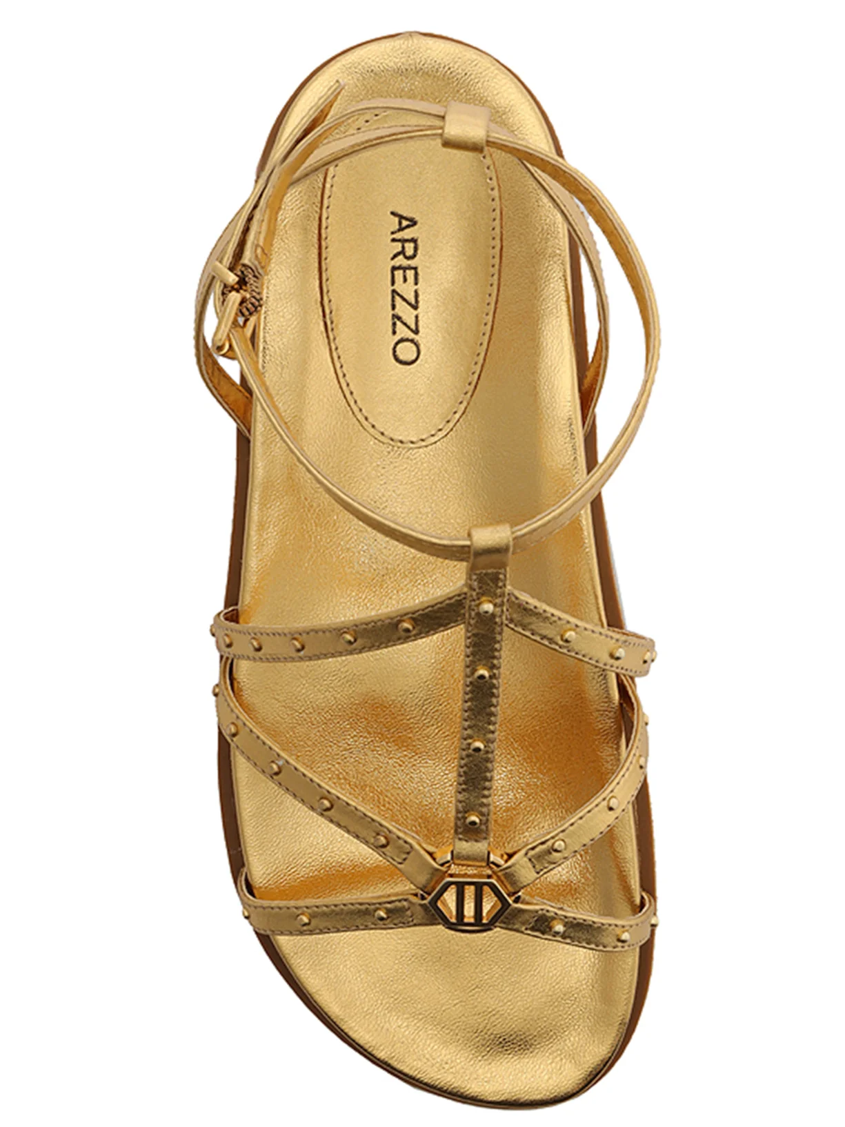 Sandália Feminina Papete Couro Tiras Rebites, Arezzo.
