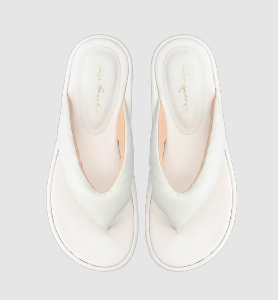 Este modelo é a combinação perfeita de conforto e sofisticação, a tendência pillow vai permitir que você adote o estilo “menos é mais” mantendo o refinamento e luxo. O modelo é produzido em couro no tom off white, possui tiras volumosas e salto flatform.