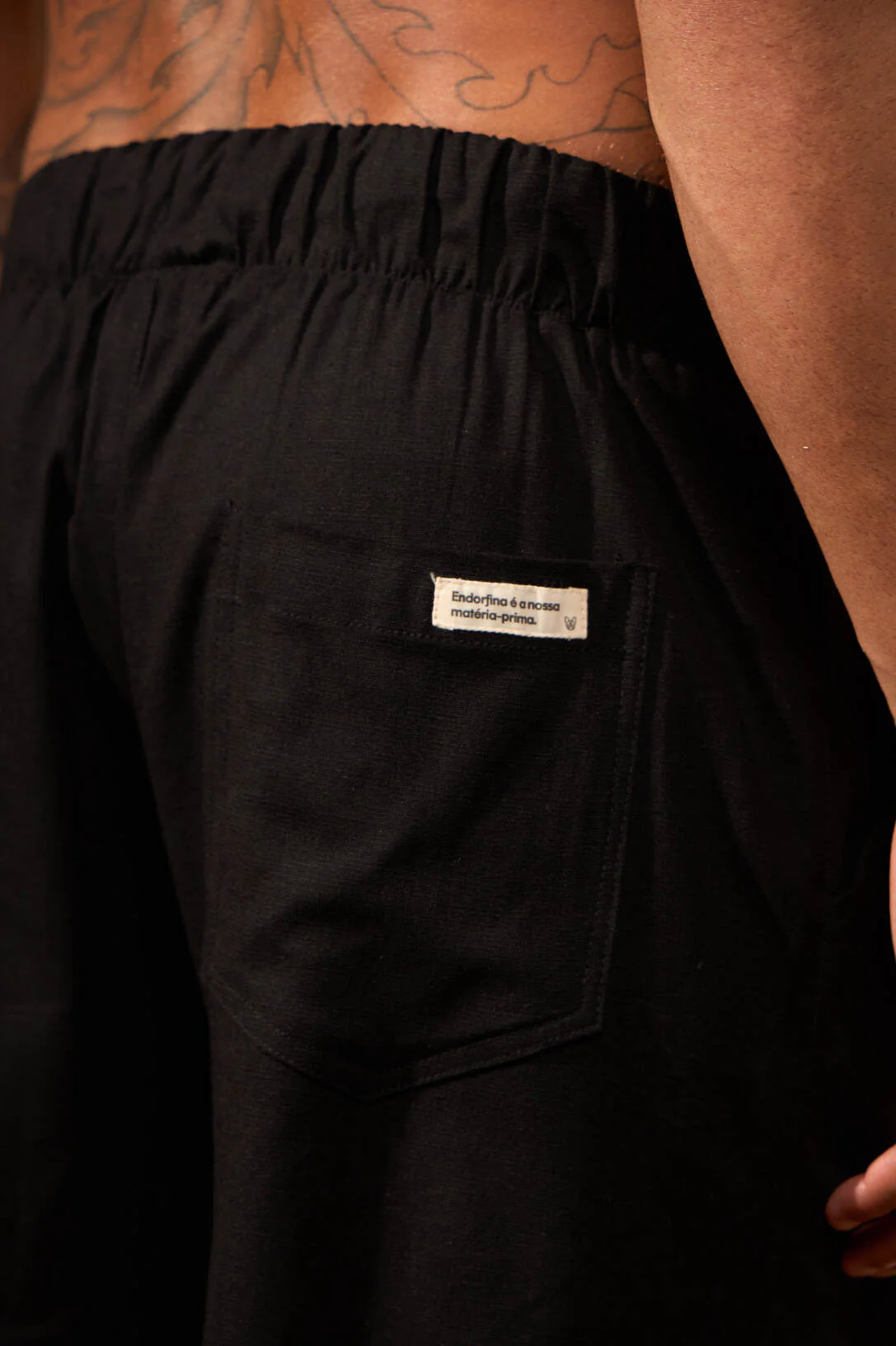 49% algodão, 49% poliéster, 2% elastano
