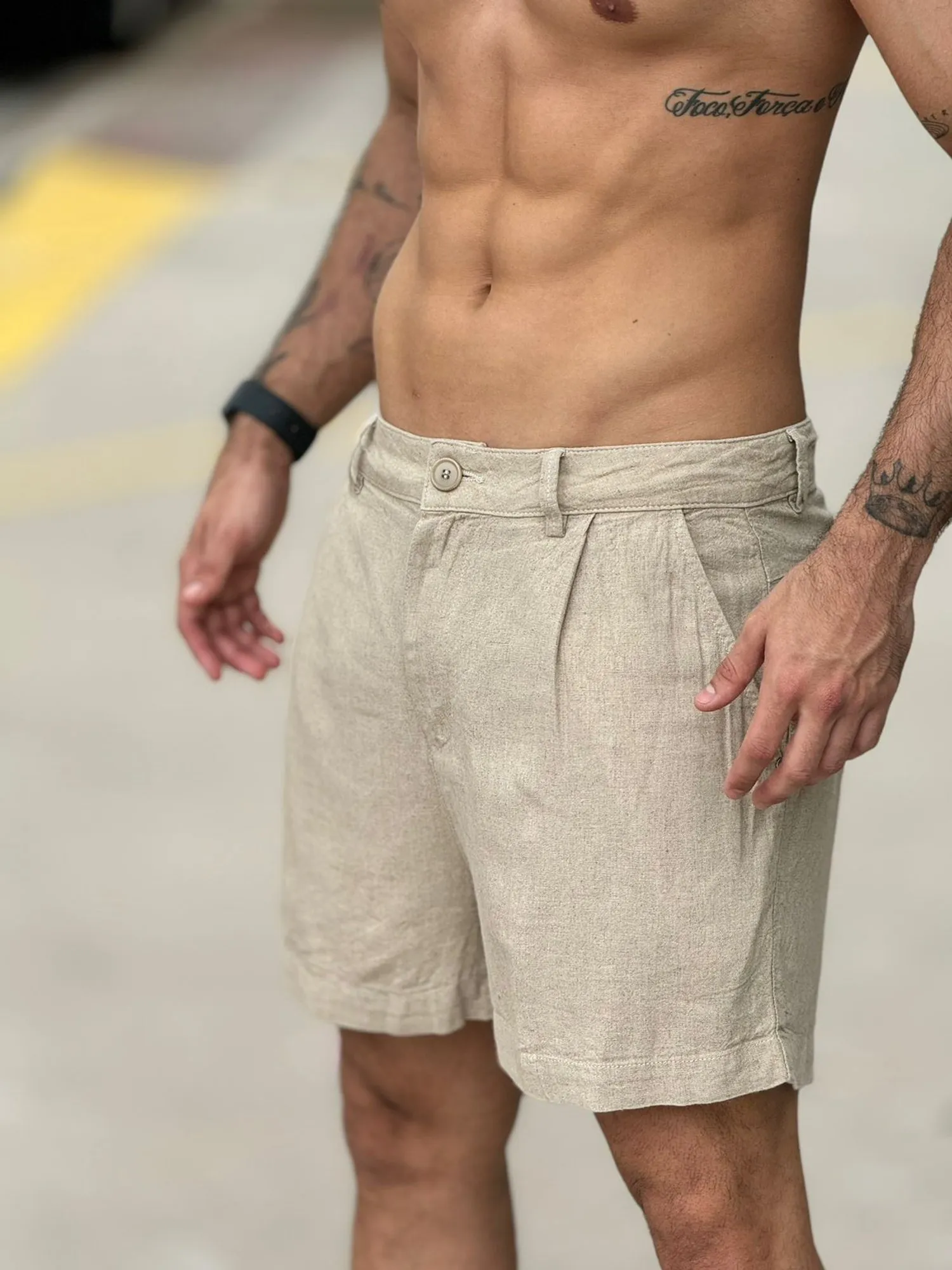 Short Fluid Linen Pleats