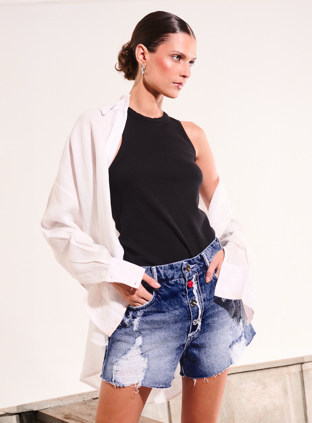 Short Jeans Mia Puído – OPEN The Surf Club Prepare-se para curtir o verão com o Short Jeans Mia Puído, a peça que une conforto e estilo com um toque vintage! Ele é a cara da The Surf Club: descontraído, cool e perfeito para criar looks incríveis do dia para a noite. Uma Vibe Casual Chic! O Short Jeans Mia Puído é confeccionado em algodão, garantindo um toque macio e confortável na pele. O design atemporal, com detalhes como o puído e a lavagem única, traz um ar vintage que está super em alta. Detalhes que Fazem a Diferença: • Peça: Short Jeans Mia Puído