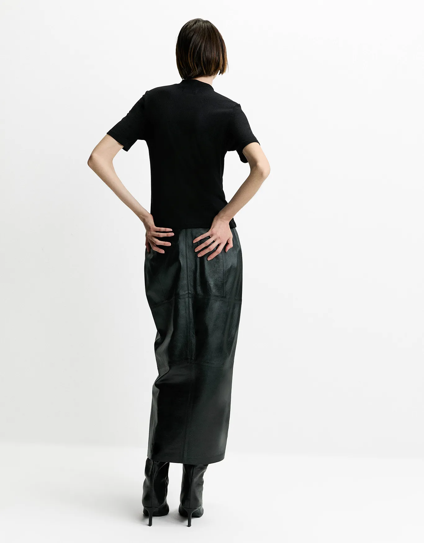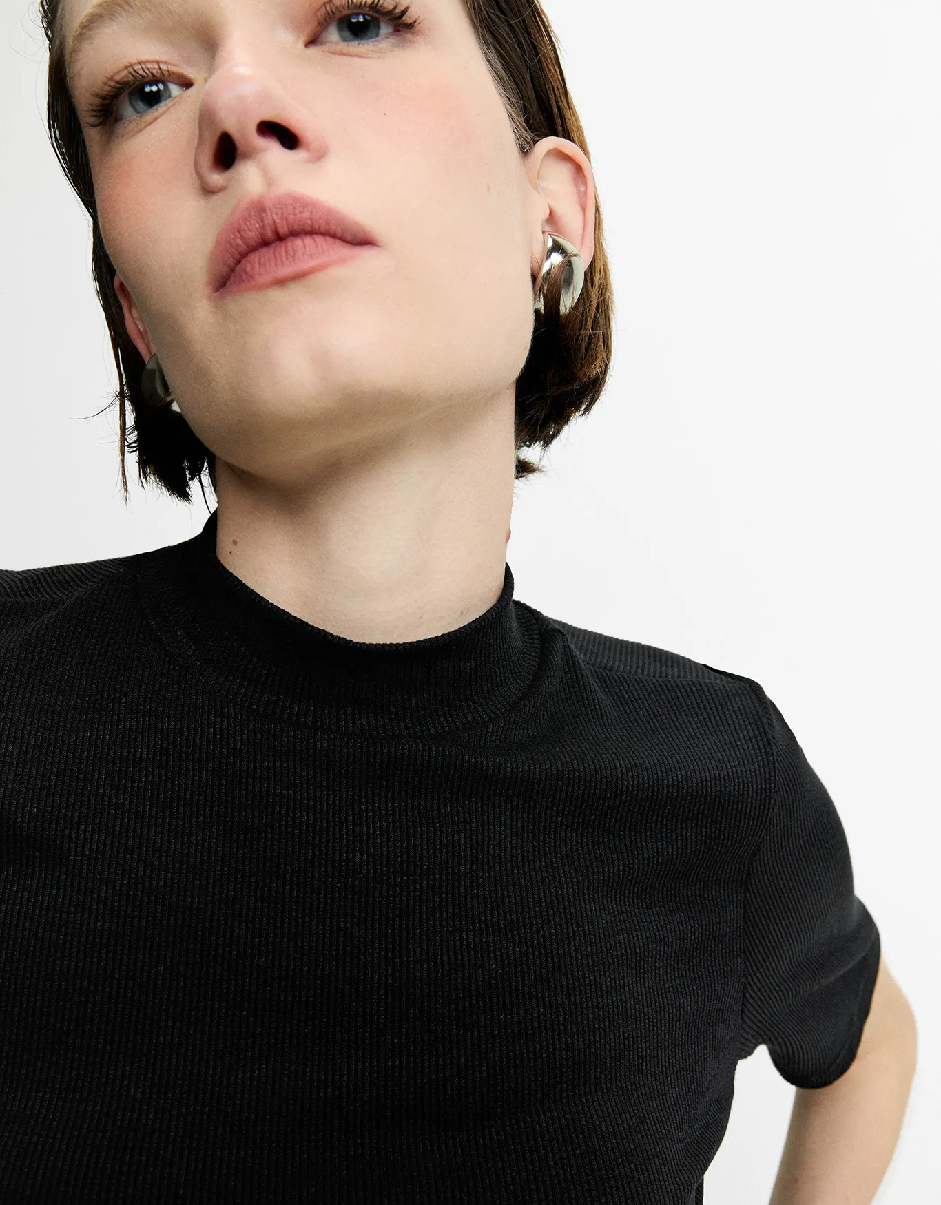 T-shirt canelada gola alta preta