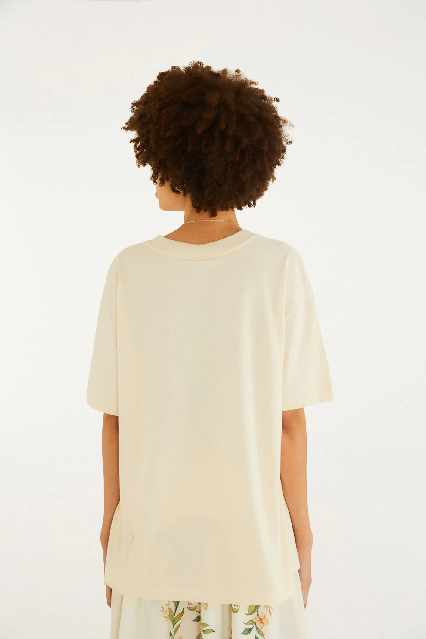 t-shirt media carrinho de coco. com corte solto e confortável, é perfeita para momentos casuais ou descontraídos. o destaque fica por conta da arte exclusiva FARM, que traz o charme carioca de um carrinho de coco, dando um toque de originalidade e frescor. as mangas curtas garantem um visual leve e descomplicado. FARM Rio, coleção Carioca – inverno 26.