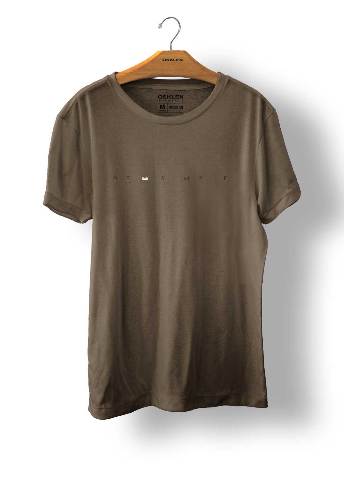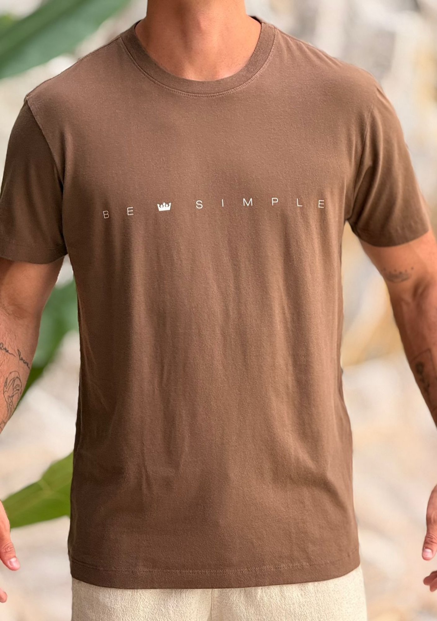No centro do peito há uma estampa discreta com a frase “BE SIMPLE”.