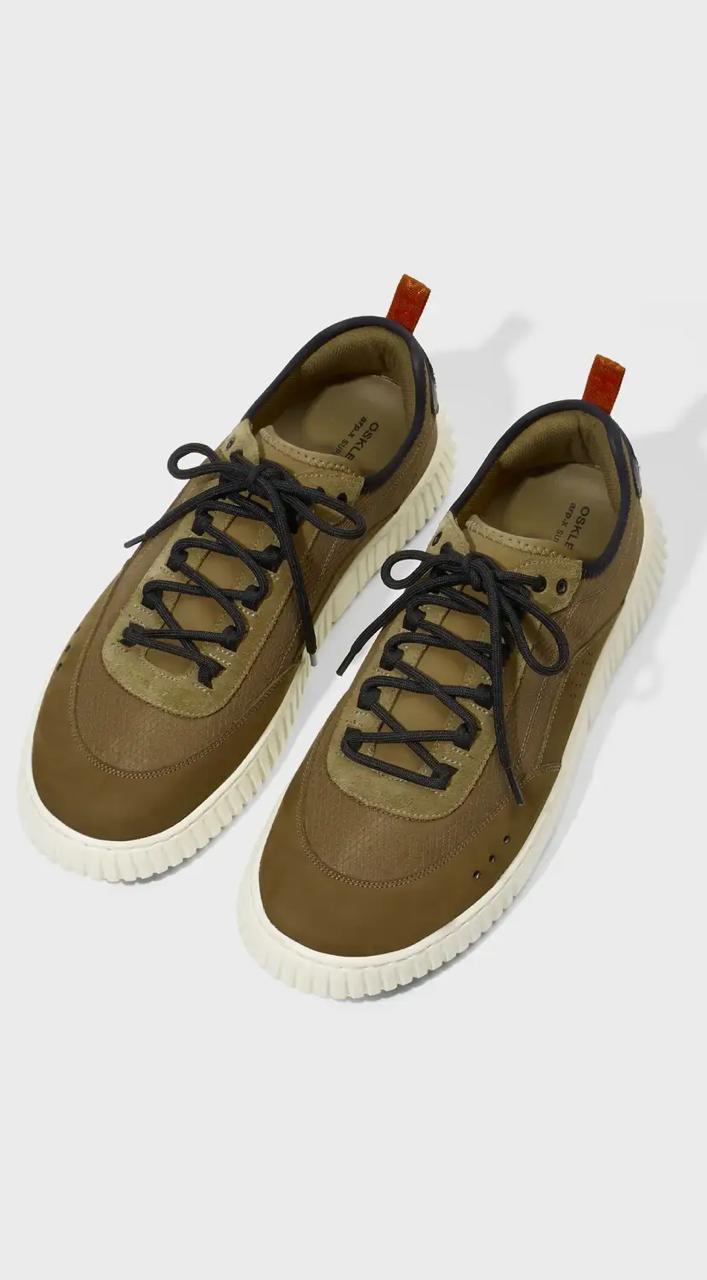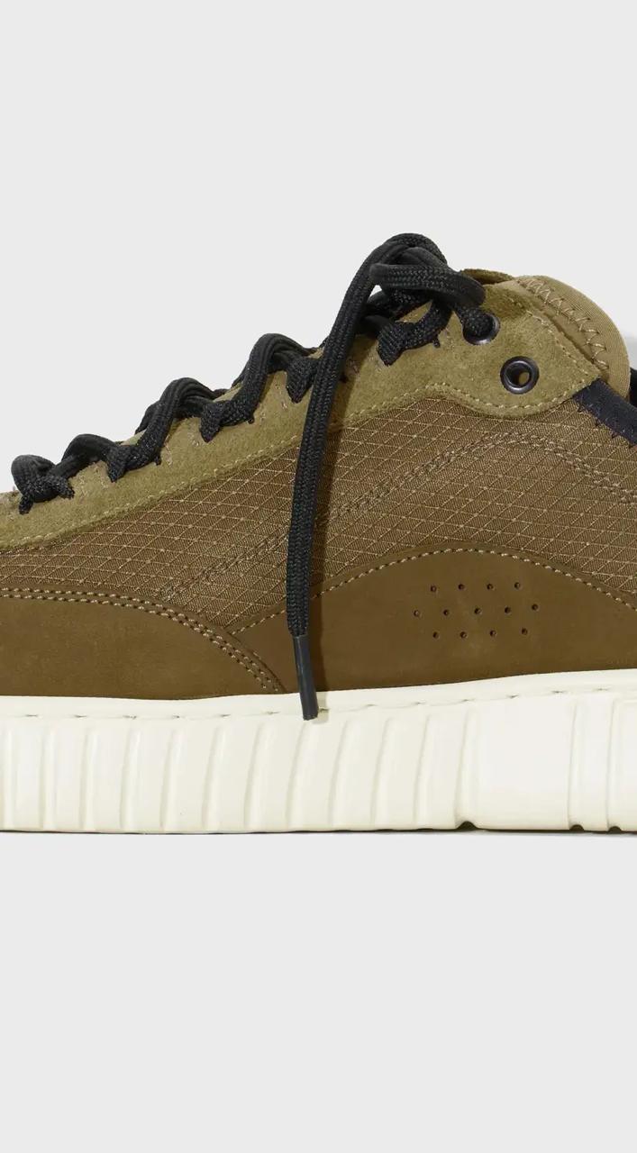 Tênis Arp(X) em material esportivo com detalhes em couro bovino. Modelo de amarração. Forro esportivo. Solado com EVA Verde costurado ao cabedal com design exclusivo Osklen, produzido com mais de 70% de carbono de base biológica, oriundo da cana de açú