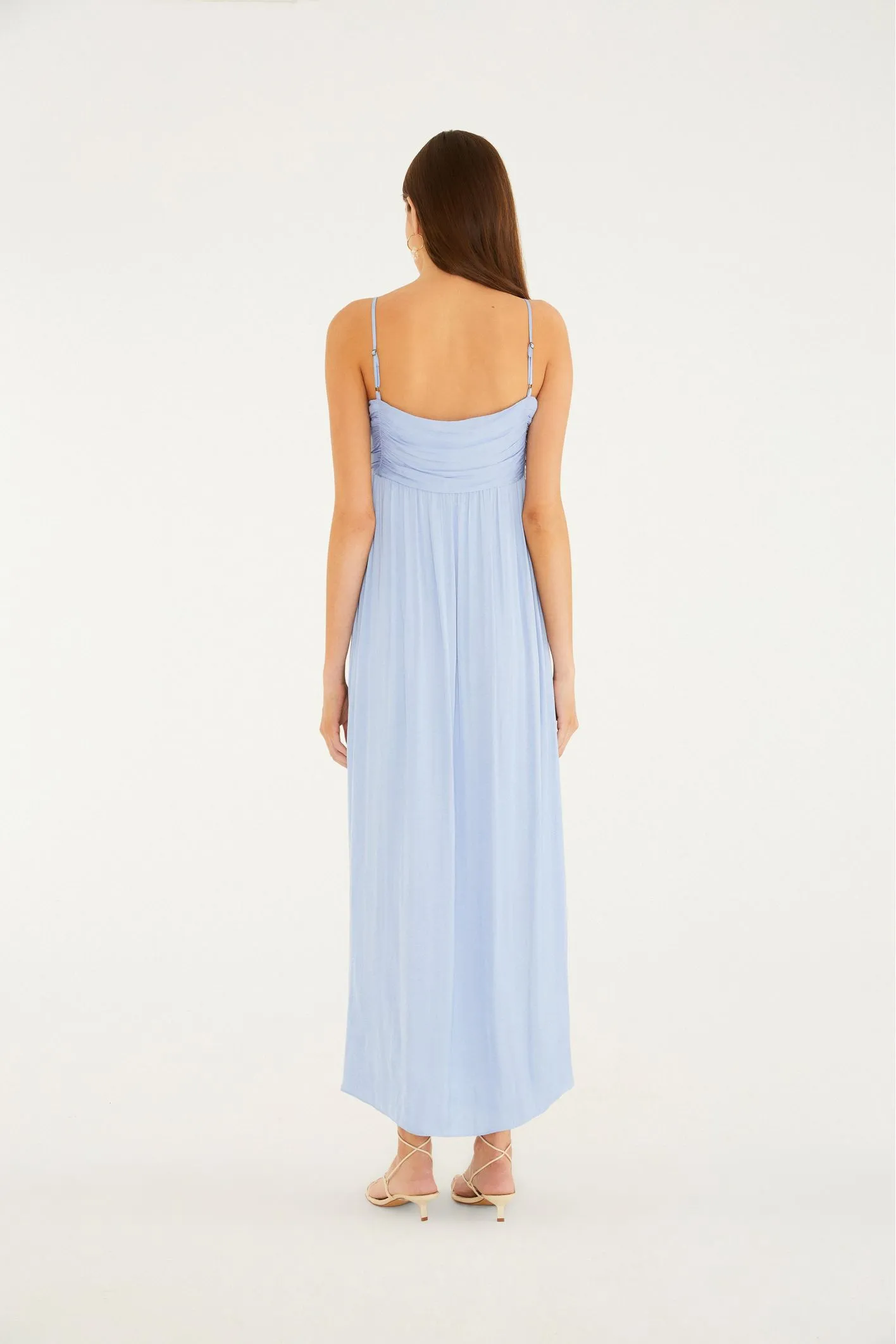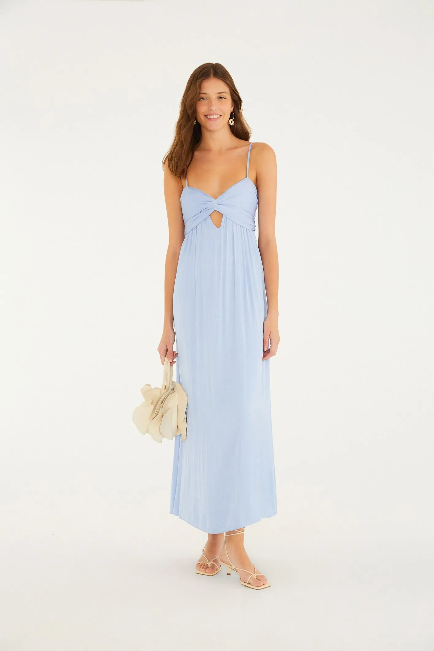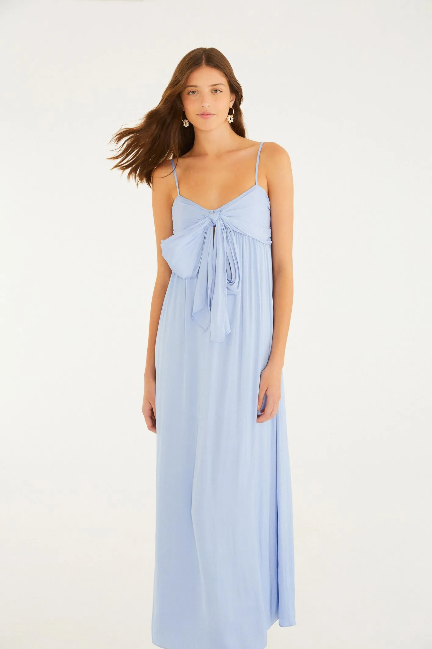 vestido cetim amarração. modelo longo com alças finas ajustáveis e um charmoso detalhe frontal de amarração, conferindo charme extra. decote discreto em v e caimento fluido proporcionam conforto e liberdade de movimento. perfeito para eventos casuais ou momentos especiais ao ar livre. FARM Rio, coleção Carioca – inverno 26.
