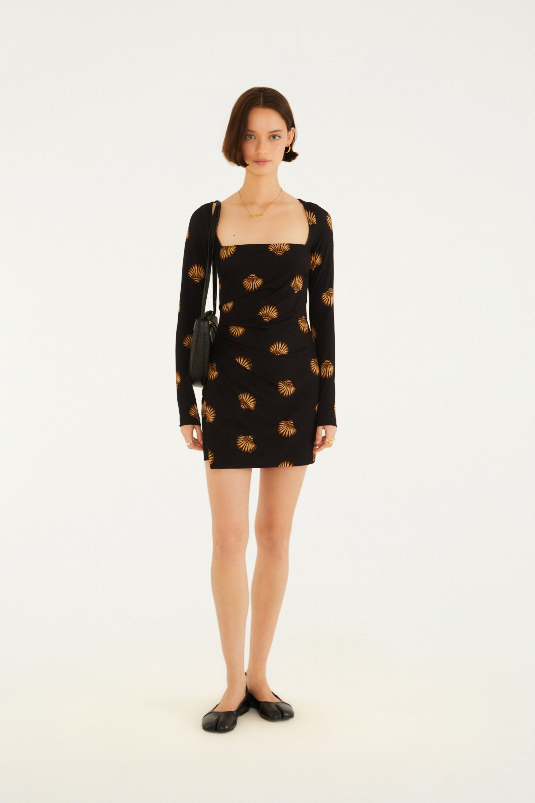 Comprimento Curto: O corte mini equilibra o fato de a peça ser fechada na parte superior, trazendo jovialidade ao look.