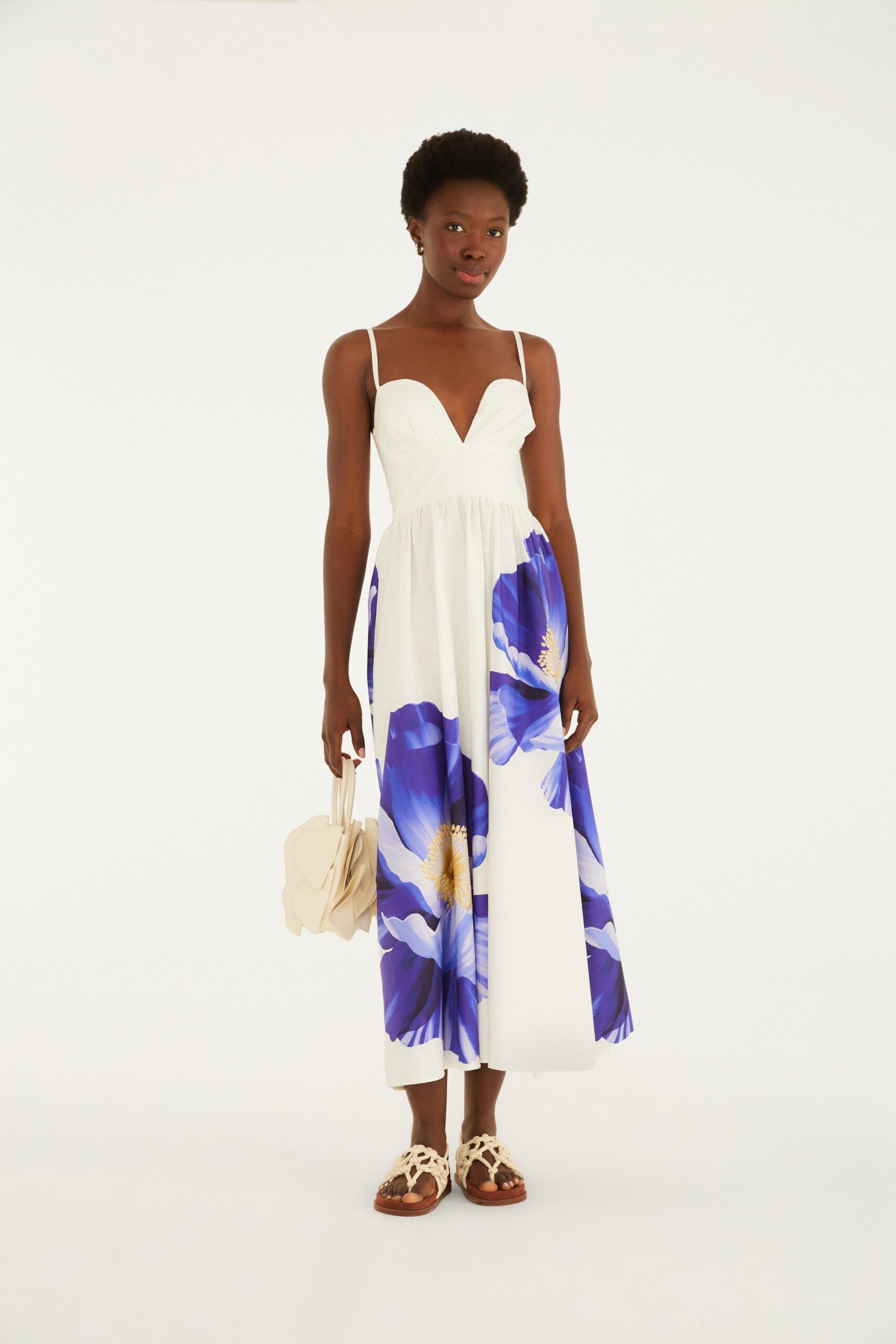 vestido longo alça lola. com decote suave em coração e alças finas, este vestido oferece uma modelagem fluida que desliza delicadamente pelo corpo. perfeito para ocasiões casuais ou encontros especiais à beira-mar, eleva sua experiência de moda com originalidade e frescor. FARM Rio, coleção Carioca – inverno 26.