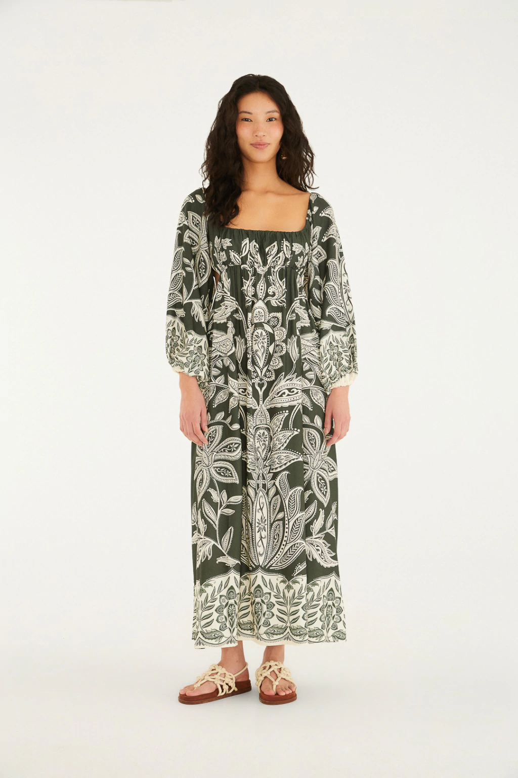Descubra a harmonia perfeita entre conforto e estilo com o Vestido Longo Céu de Arara Verde, da coleção Carioca – Inverno 26 da FARM Rio. Este vestido traz um decote quadrado que valoriza o colo com elegância, enquanto a charmosa amarração nas costas adiciona um toque especial e feminino ao visual.