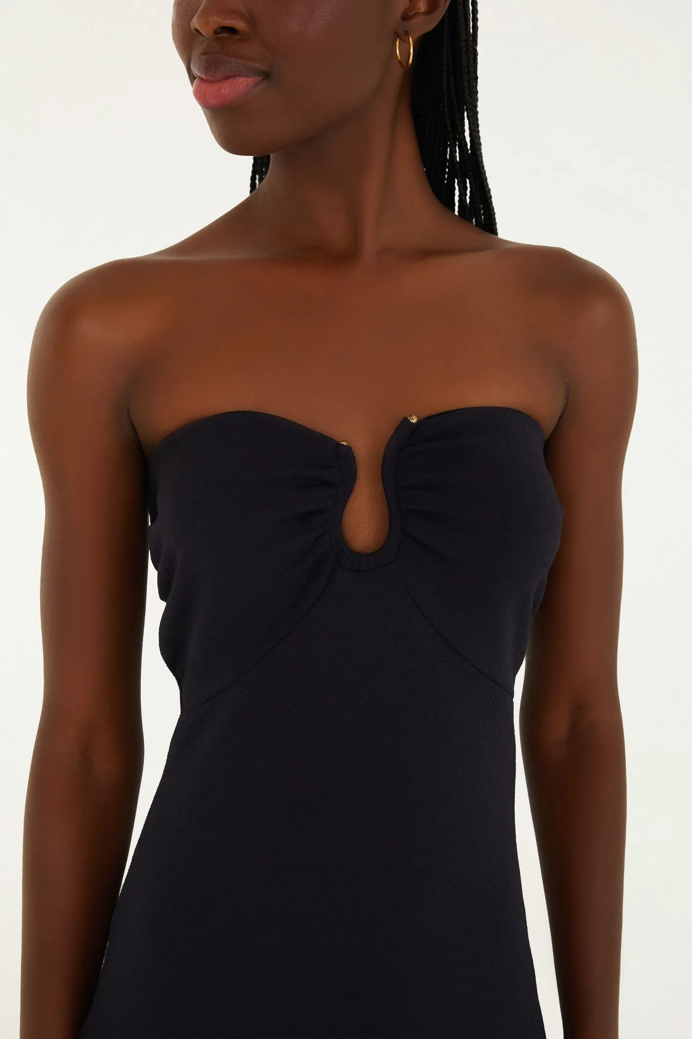 vestido midi aviamento. apresenta design sem alças com ombros à mostra, realçado por um delicado detalhe frontal que adiciona charme. o corte fluido proporciona conforto e movimento, ideal para eventos casuais ou aquele encontro especial. acabamento refinado que destaca a originalidade. FARM RIO original – verão 26.