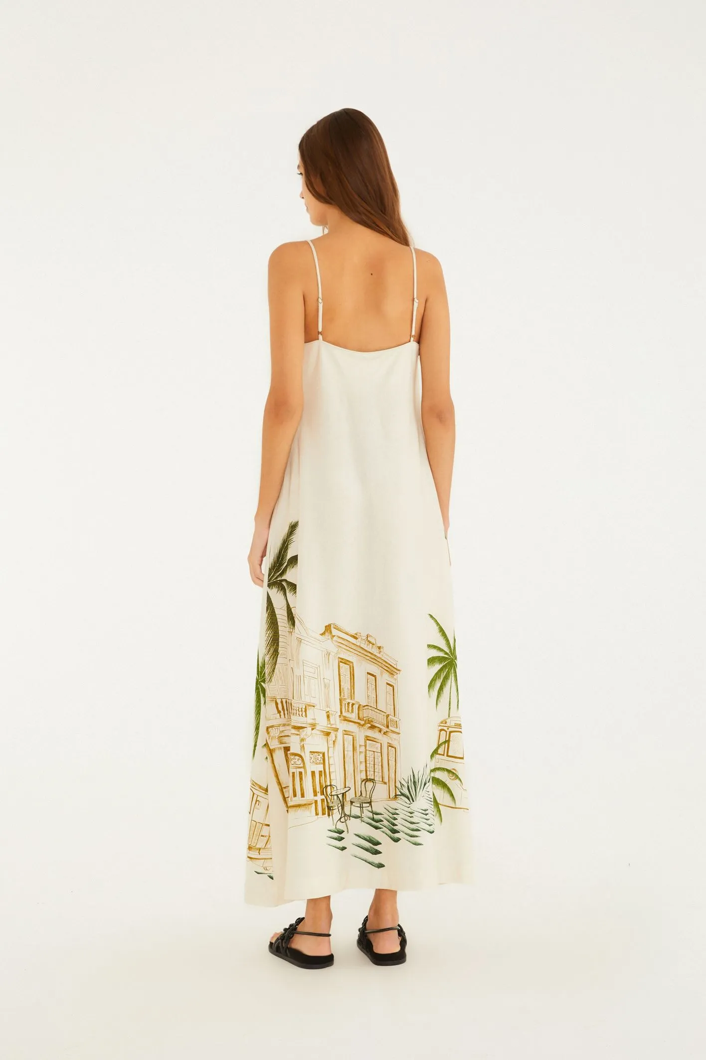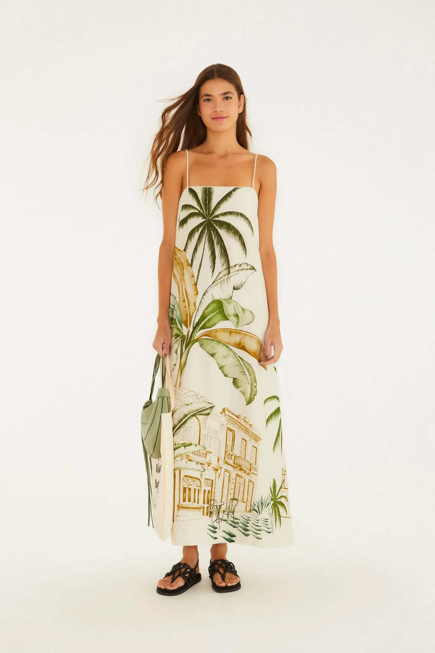 vestido midi teresa. alças finas e decote reto criam um visual moderno e leve. o corte fluido garante conforto, ideal para passeios ao ar livre ou encontros casuais. com acabamento refinado, este vestido se destaca pela originalidade e versatilidade.