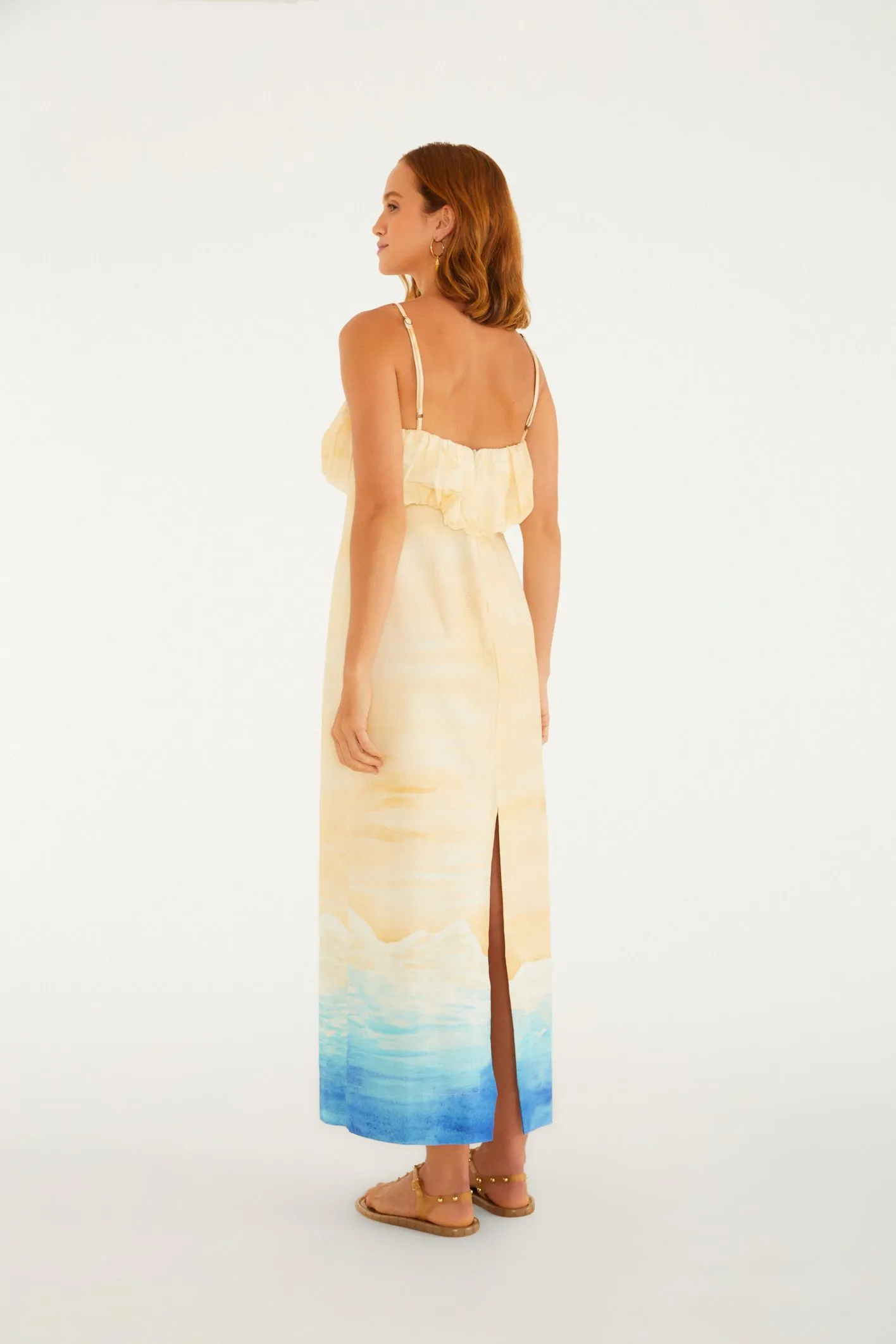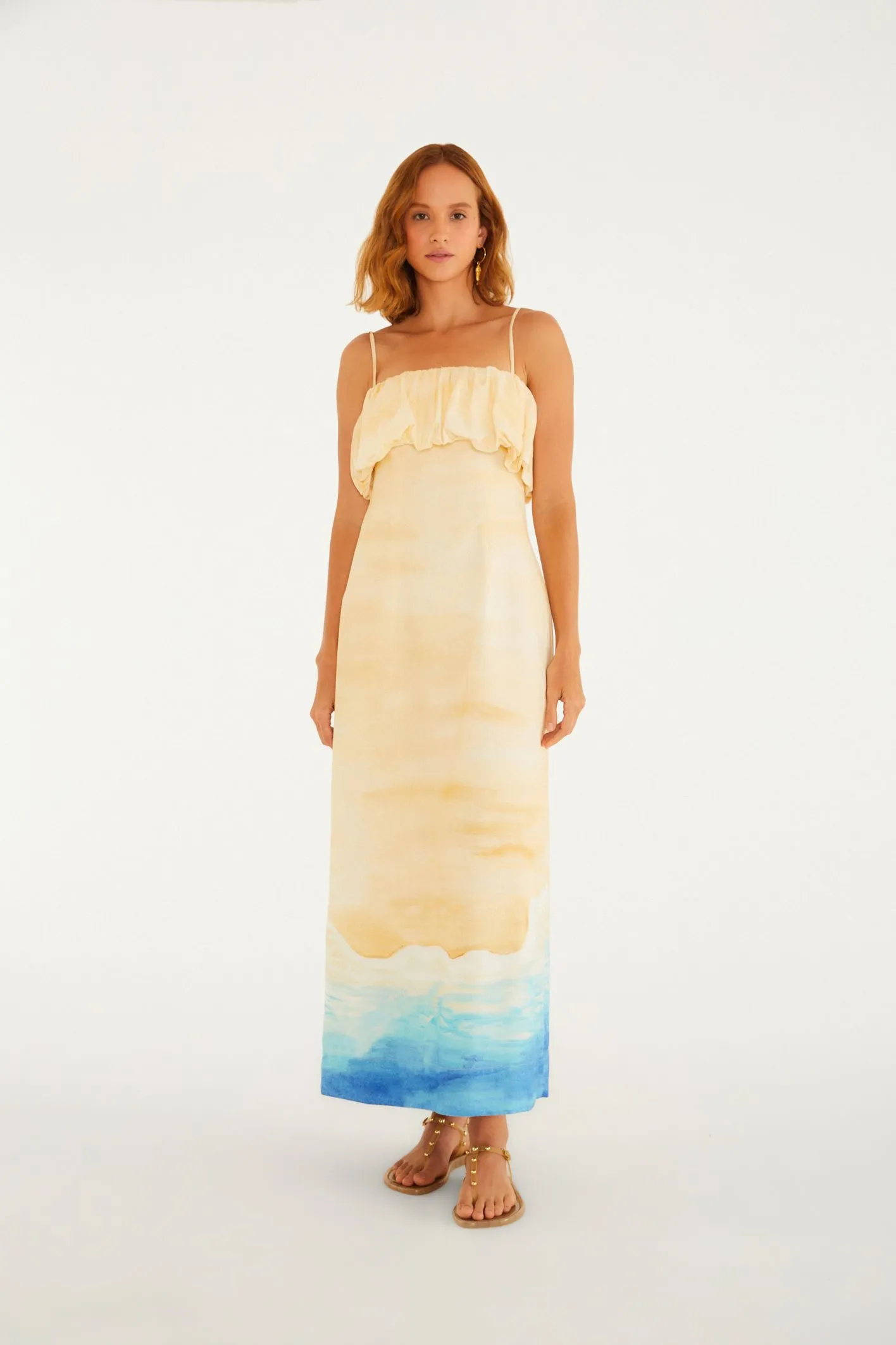 vestido reto estampado praia linda. confeccionado em tecido leve, possui alças finas e busto com delicado babado, trazendo um toque casual à peça. com corte reto e comprido, é perfeito para um dia ensolarado à beira-mar ou passeios pela cidade. tem o frescor ideal para momentos descontraídos. FARM RIO original – alto verão 26.